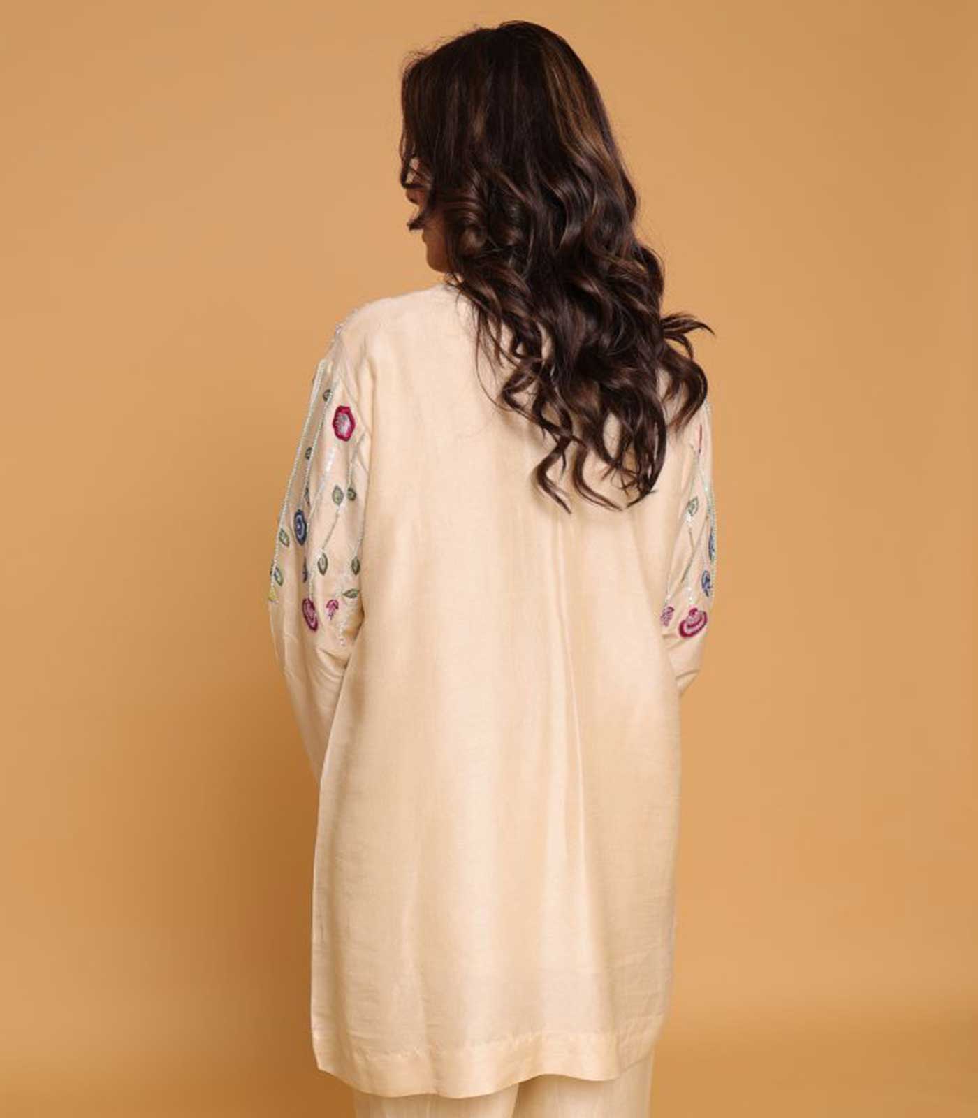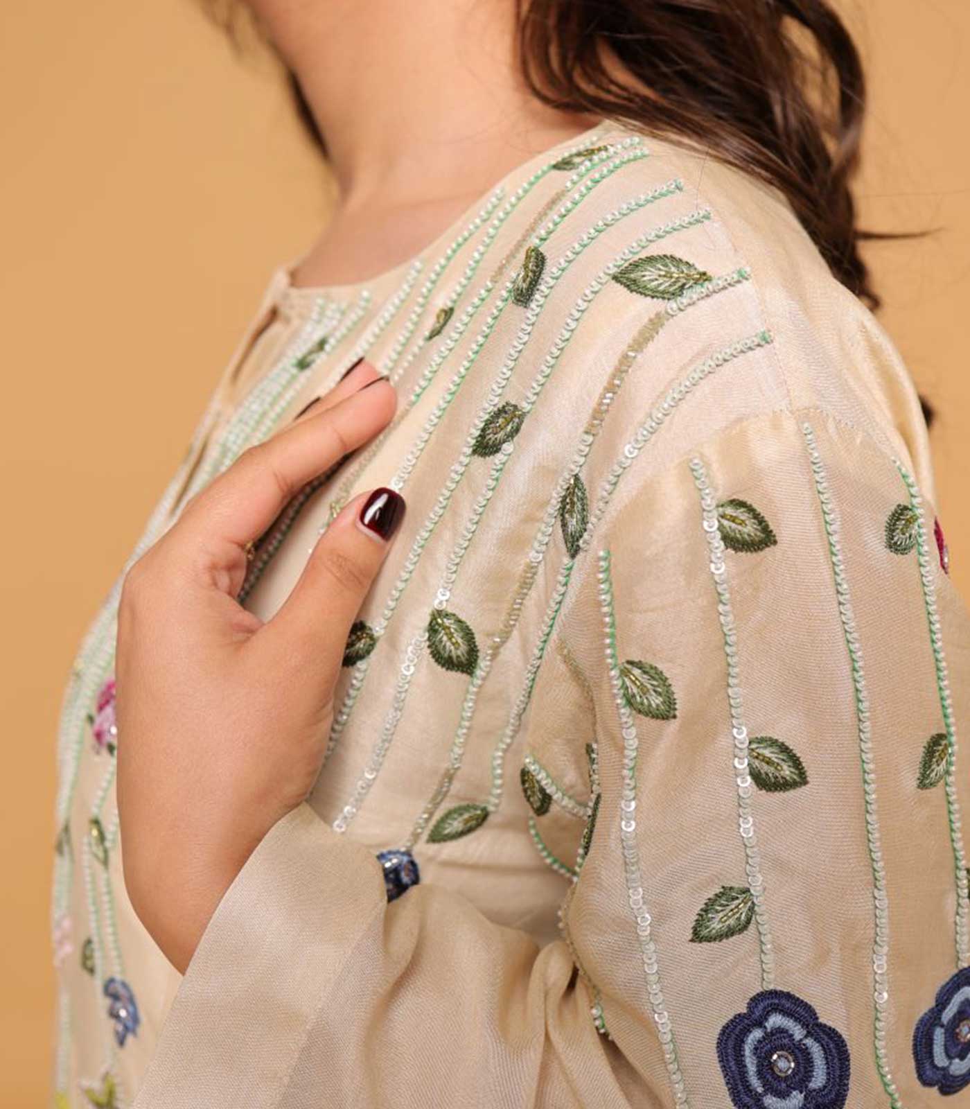Understated elegance. Our Bej cord set with hand embroidery is perfect for effortless sophistication