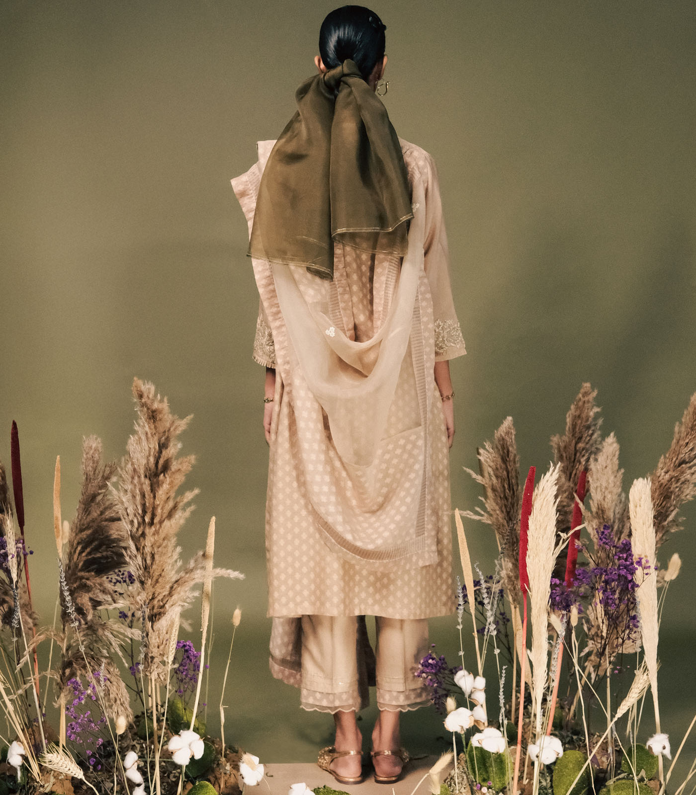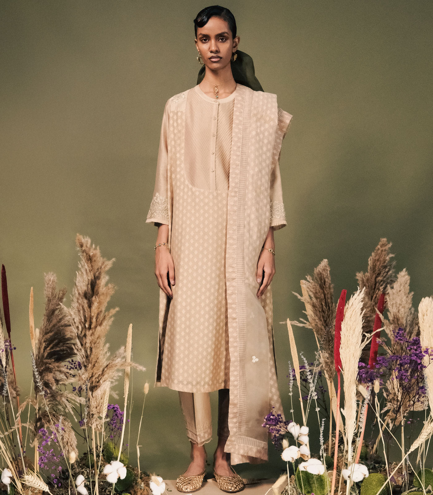 BEIGE TUNIC SET IN BANARSI BROCADE