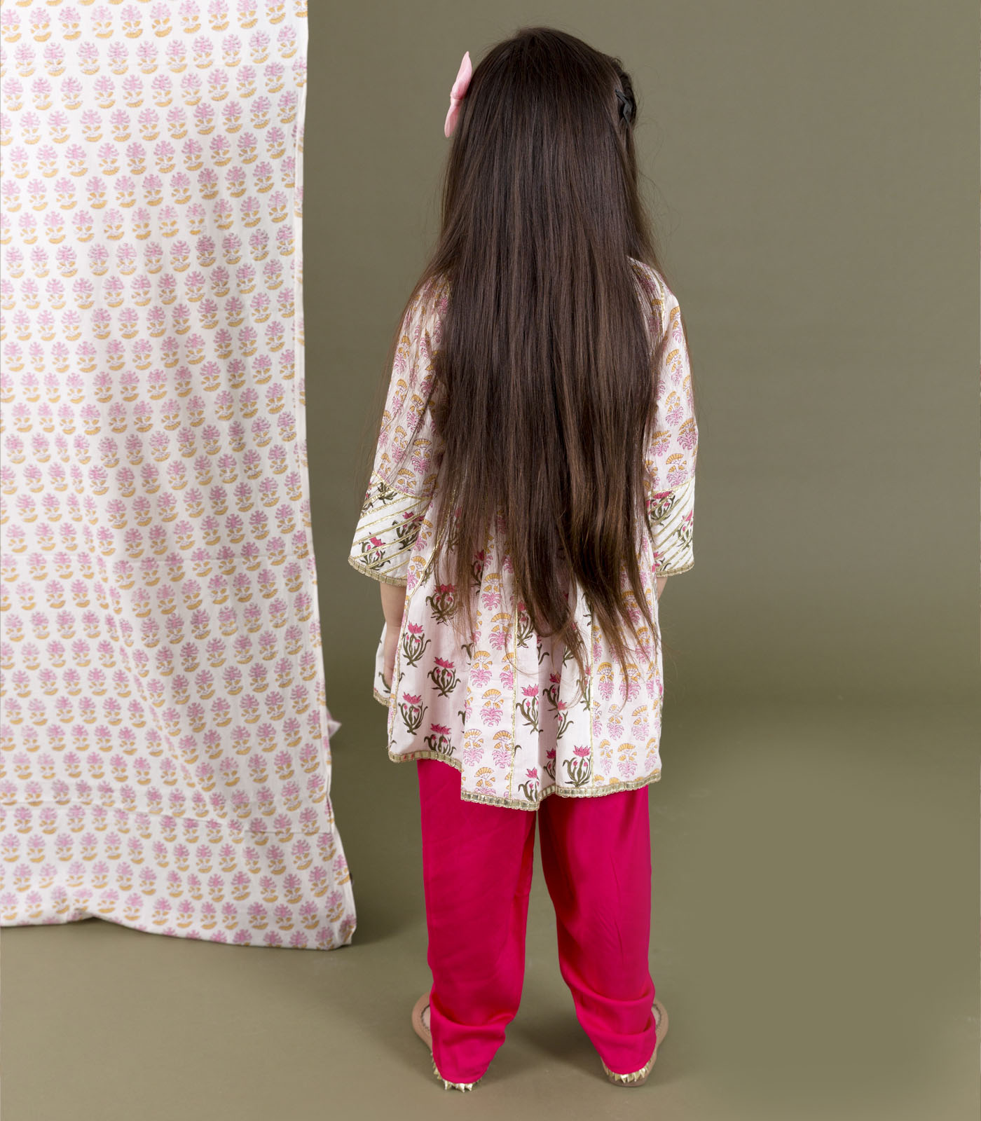 - Block print kurta with gota detailing all over