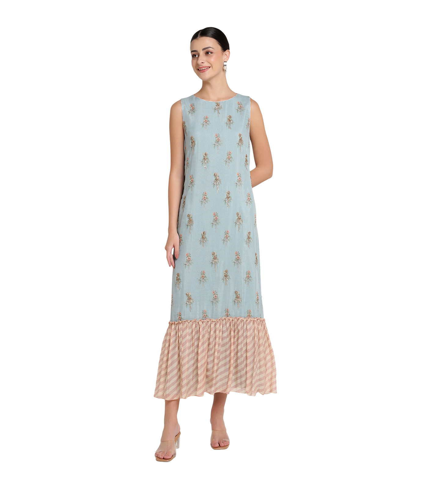The Bow Print Dress comes is Designed joyful dressing and celebrations. The bow print is beautifully highlighted with dabka and sequin hand embroidery.