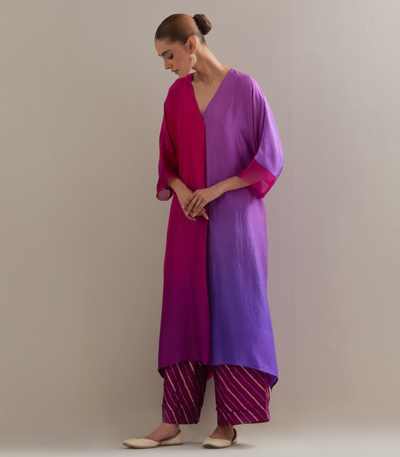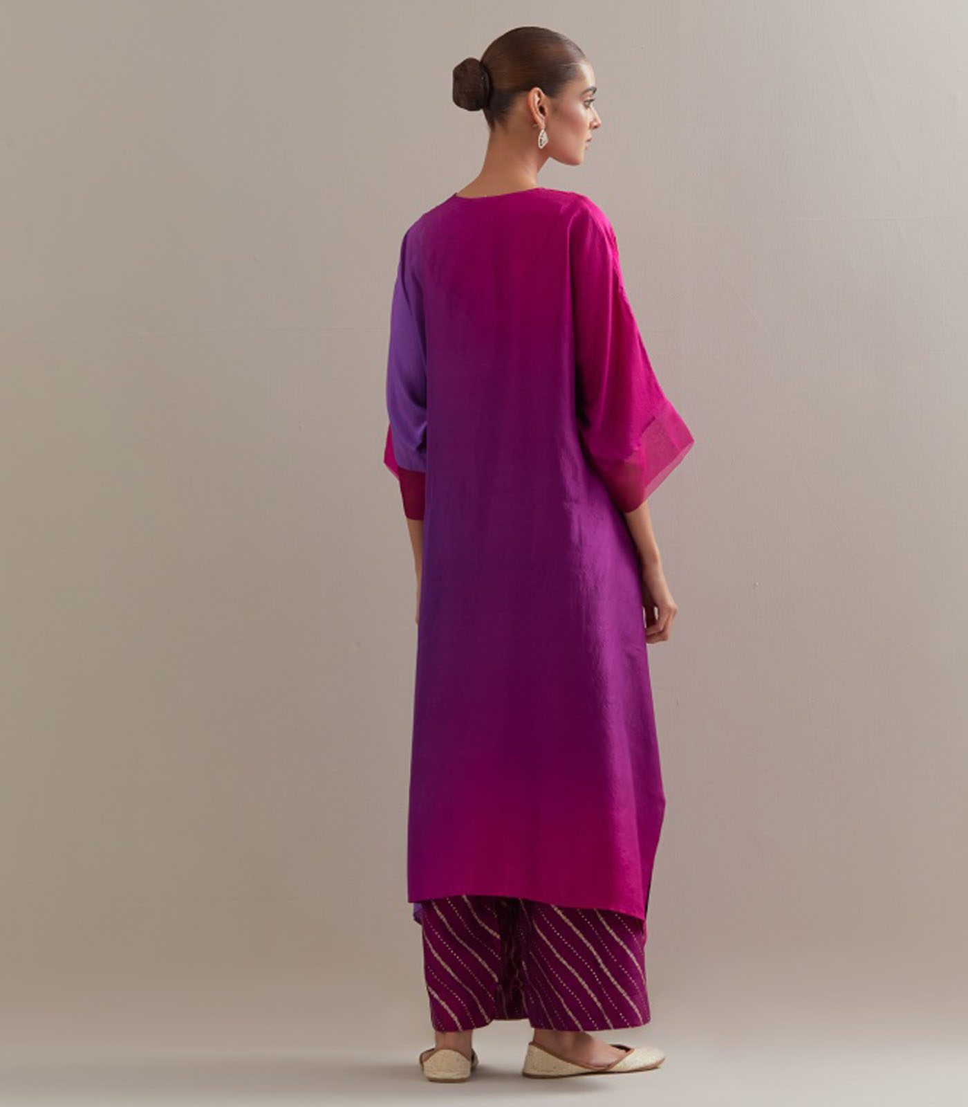 Brinjal Burgandy Ombre Kaftan with Brocade Pants