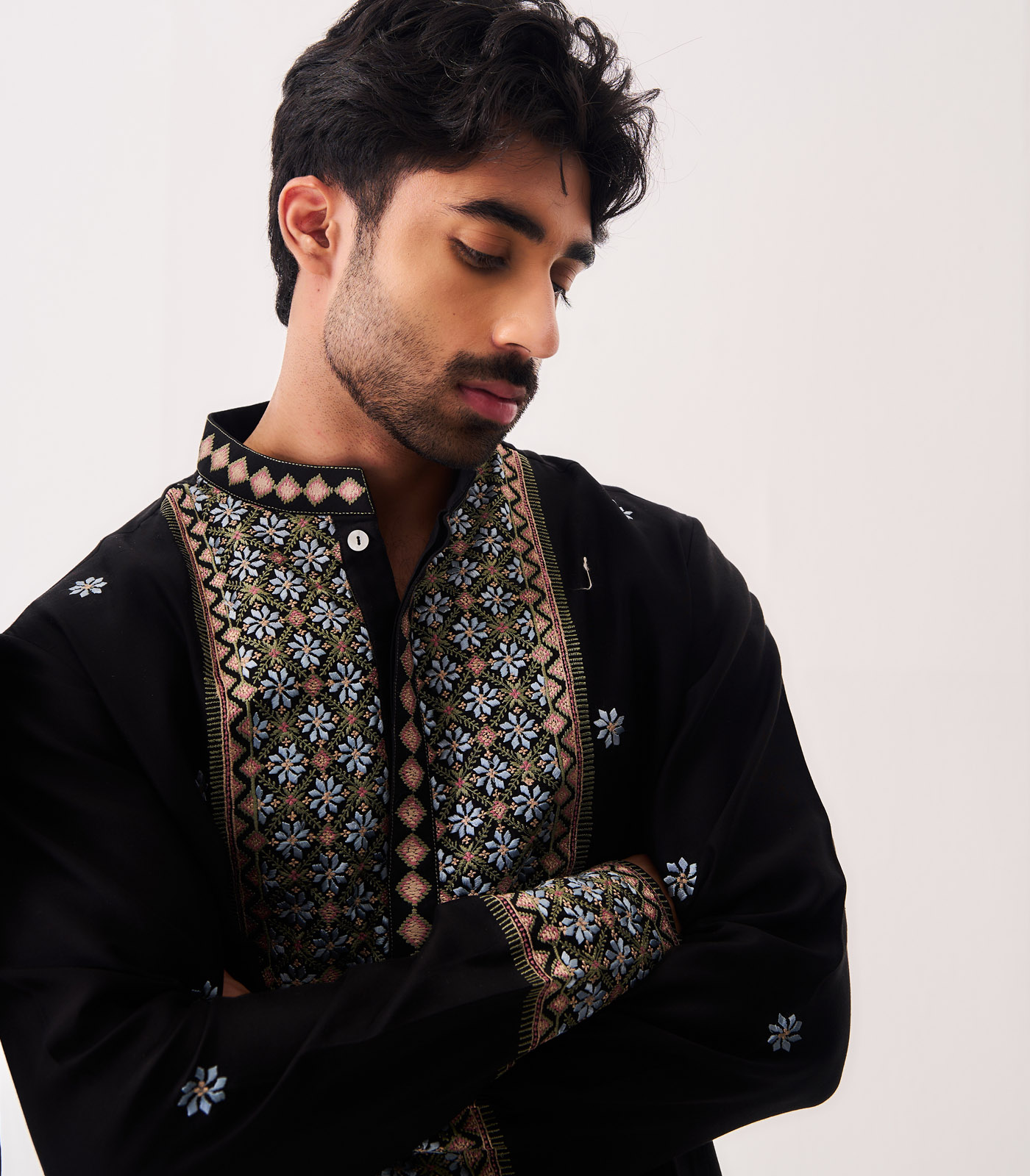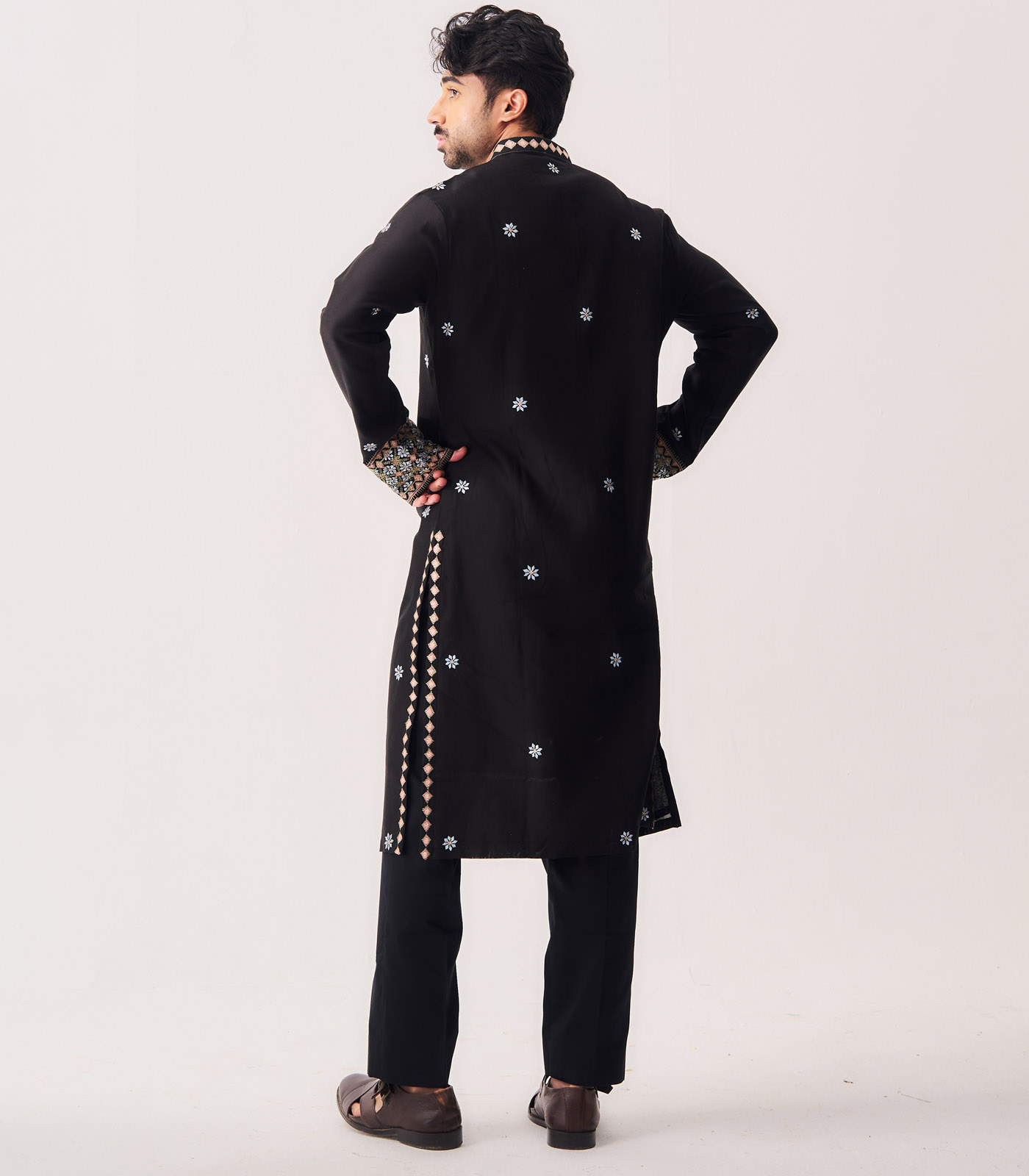 Kurta With Pants / Chanderi / Black / Midnight Mosaic / Resham Embroidery
