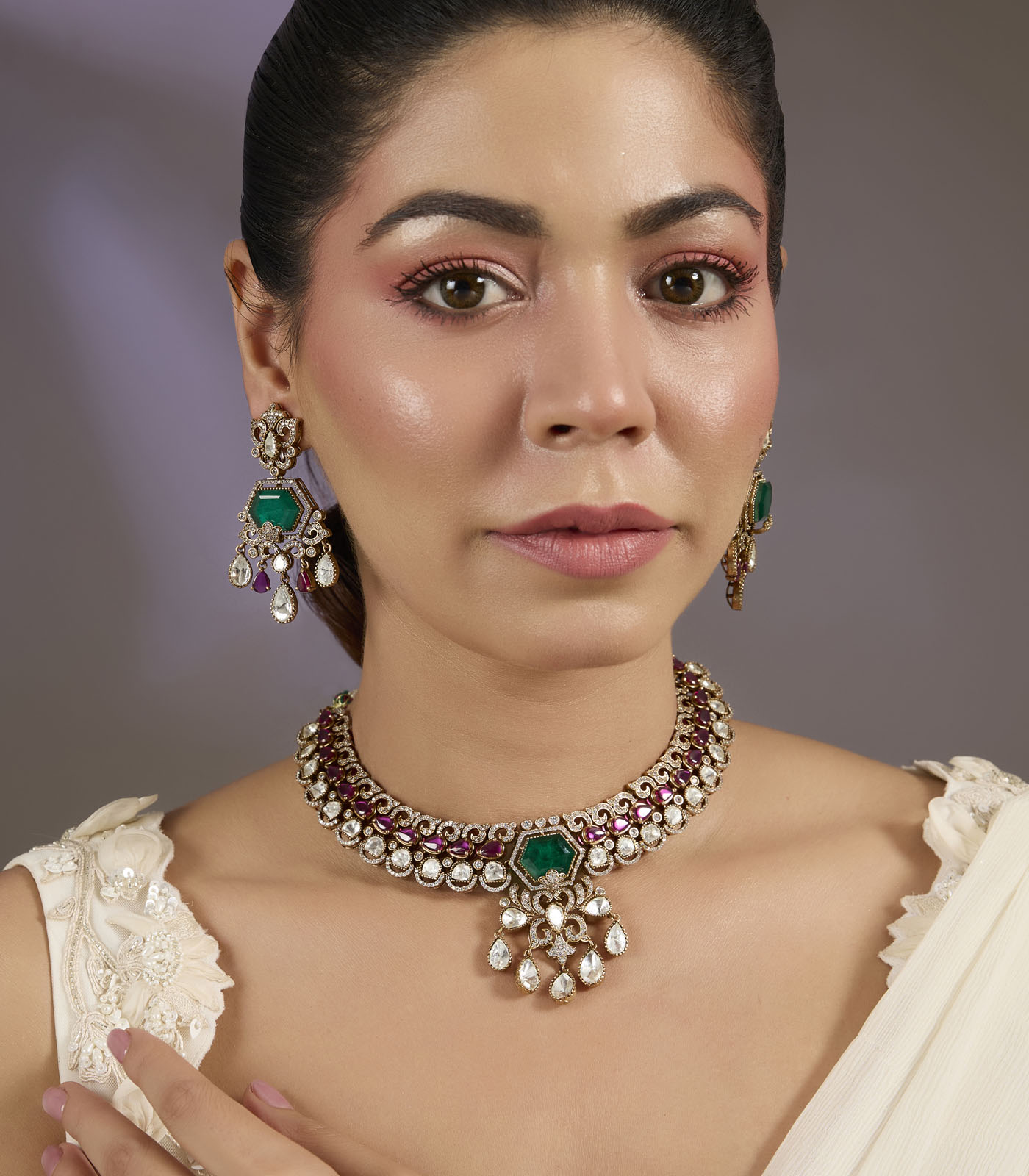 Emerald & Kundan Choker Necklace Set