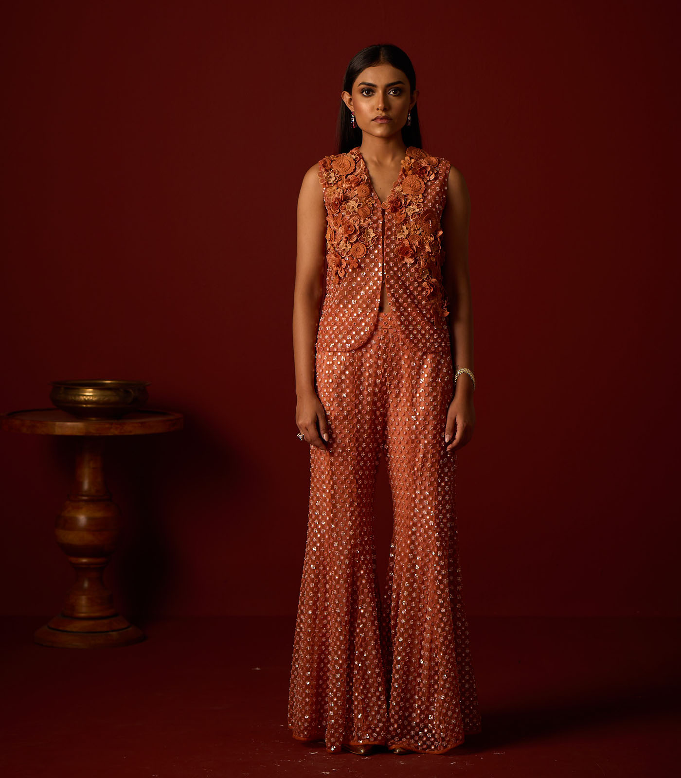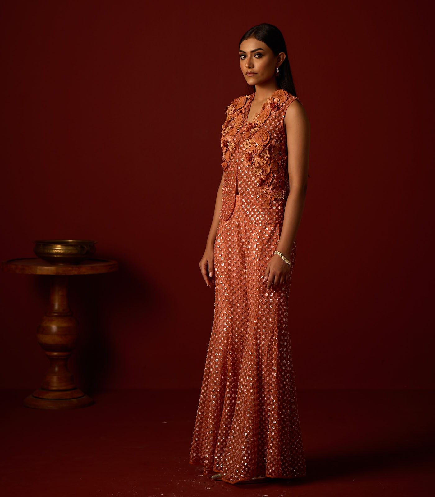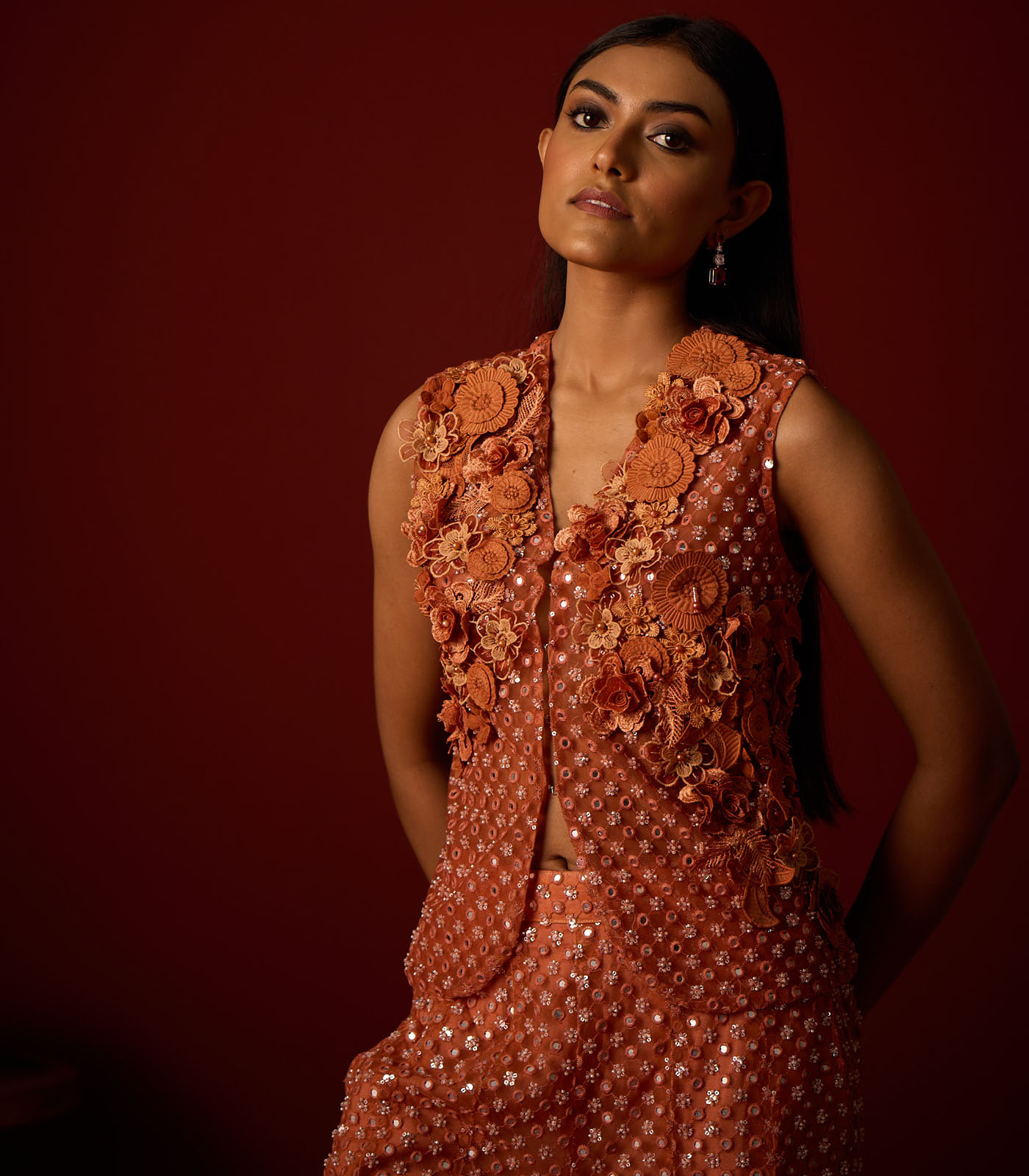 Padded Gillet With 3D Flowers, MMirrorwork Beadwork On Tulle With Net Lining
