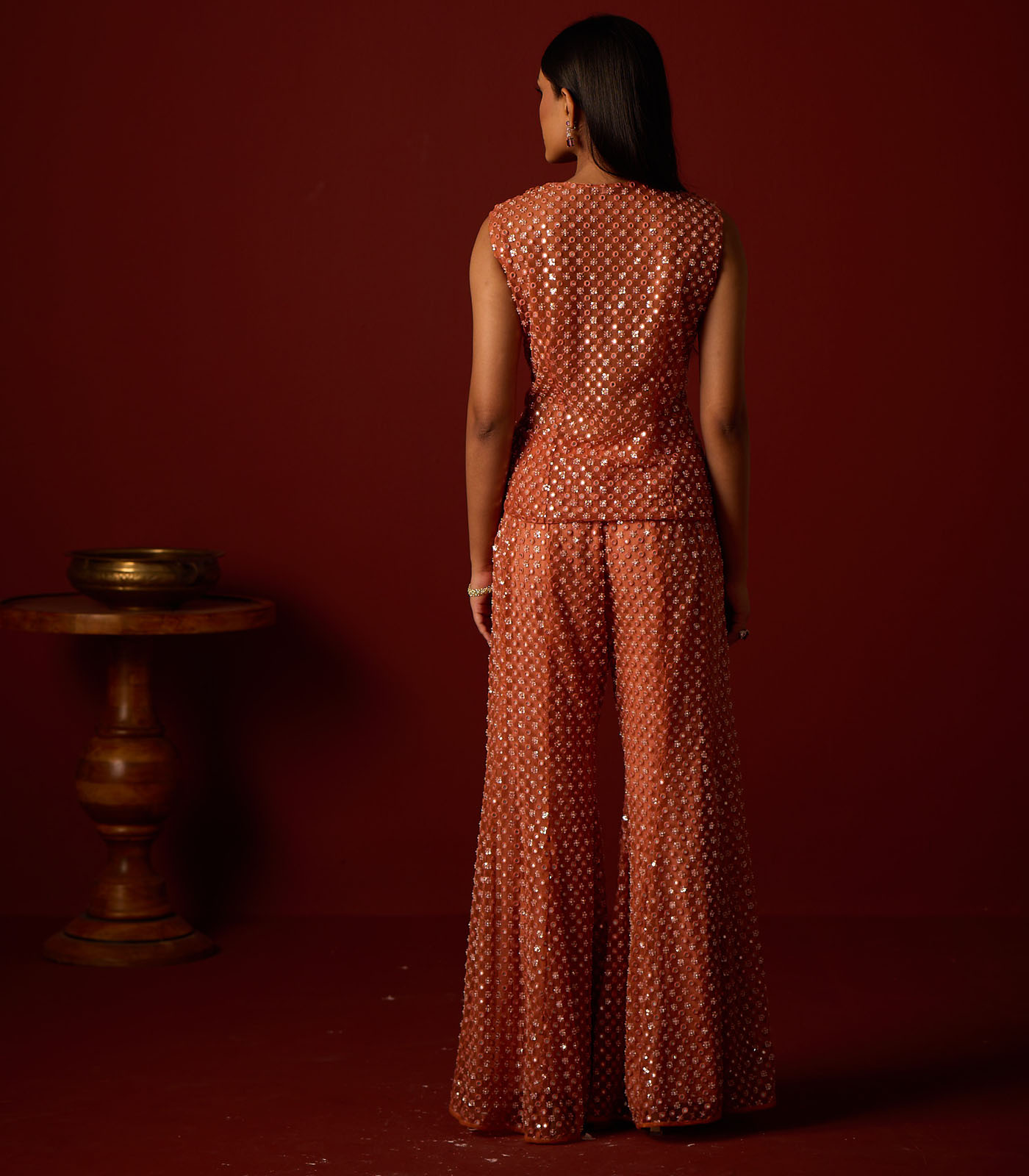| Fabric | This mirrorwork beadwork net fabric is specially designed by our team and is crafted with great care and precision. The garment is then styled at our workshop with finest details. |