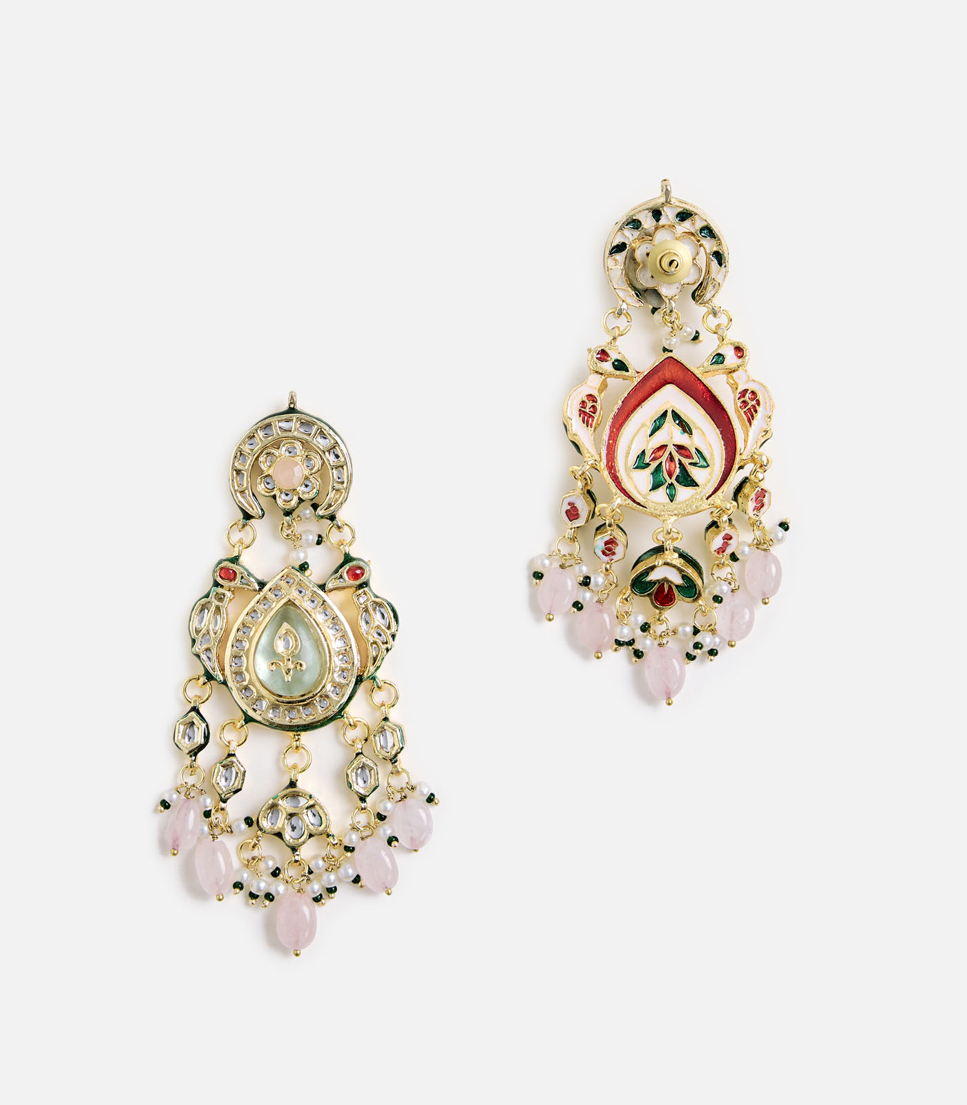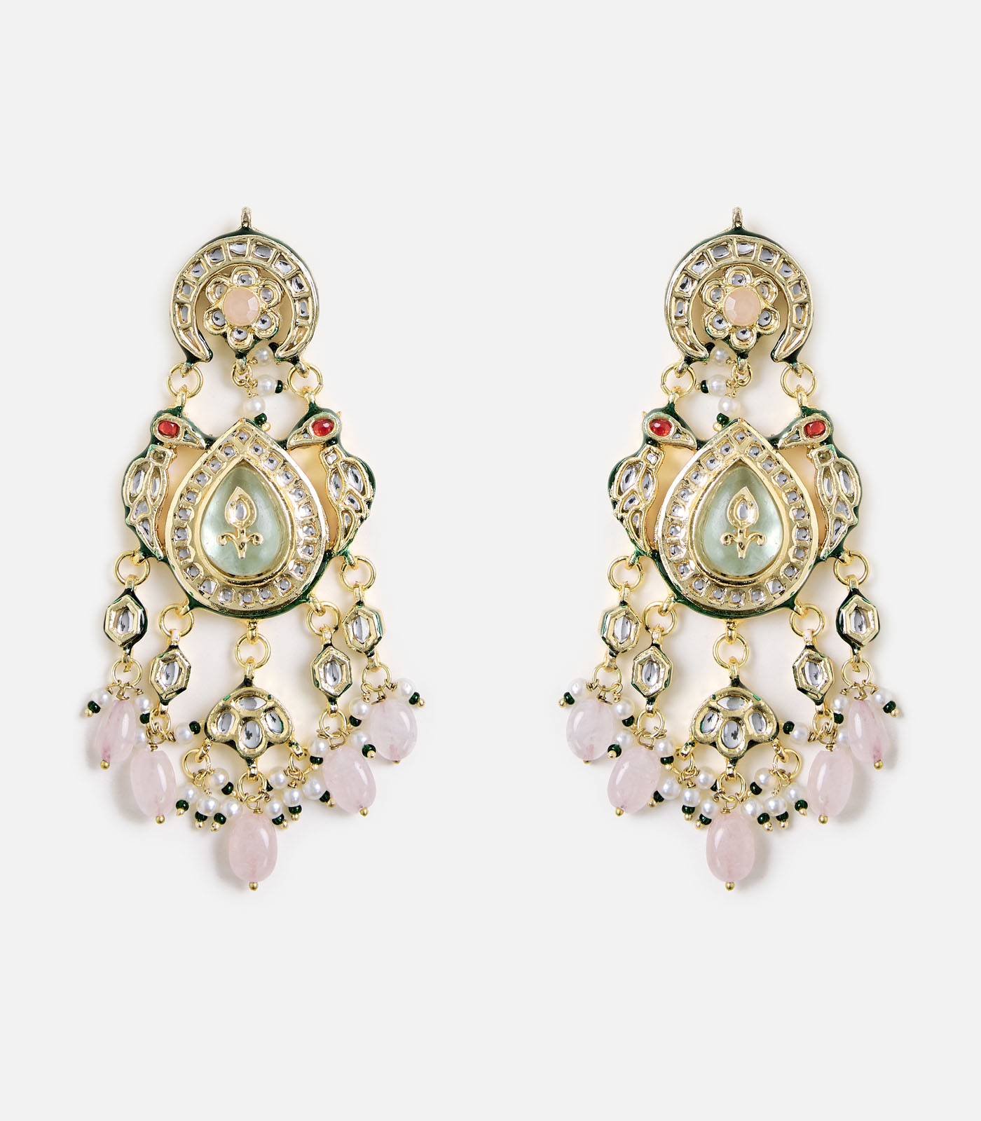 These Floral Kundan Pearl Drop Earrings combine regal elegance with modern charm. Adorned with sparkling kundan, delicate pearls, and pastel accents, they are perfect for weddings and festive occasions.