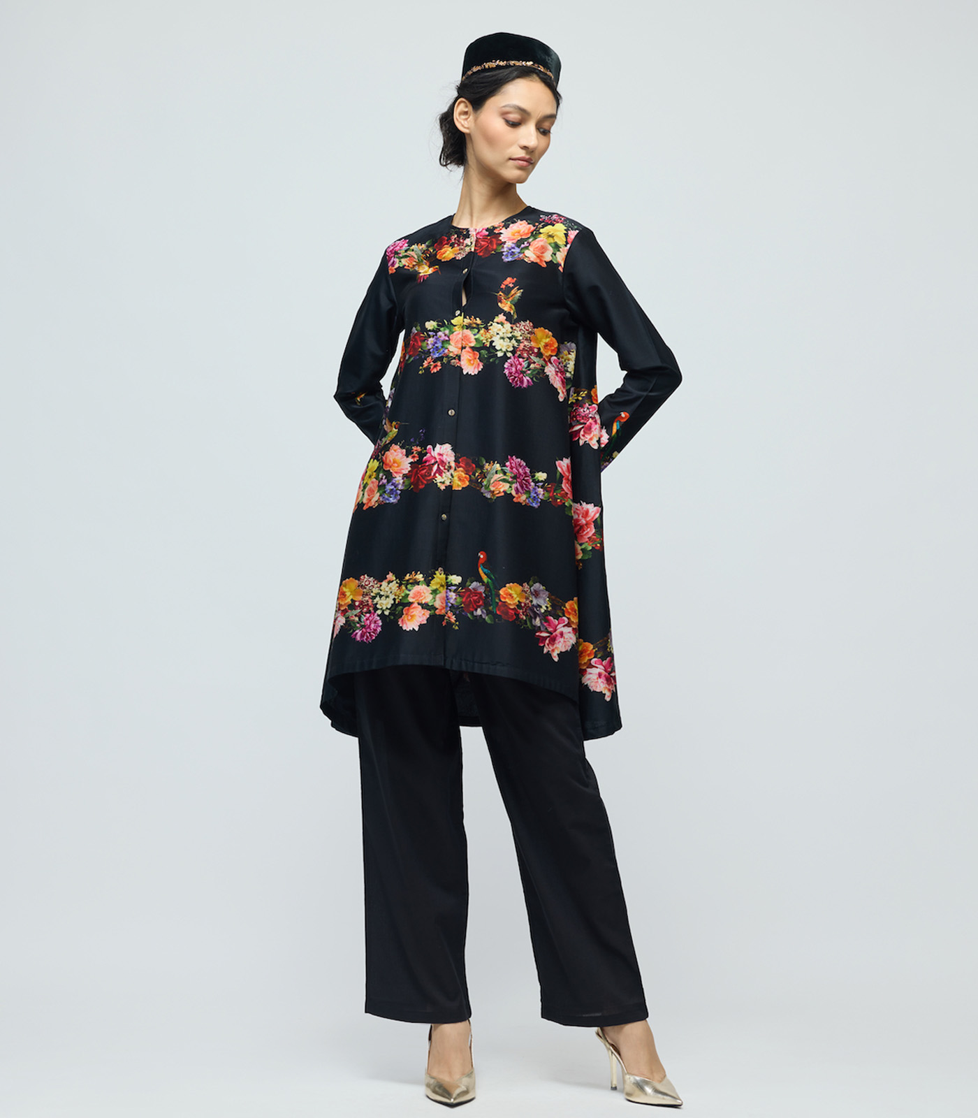 Floral printed Chanderi Tunic Set with Voile Pant