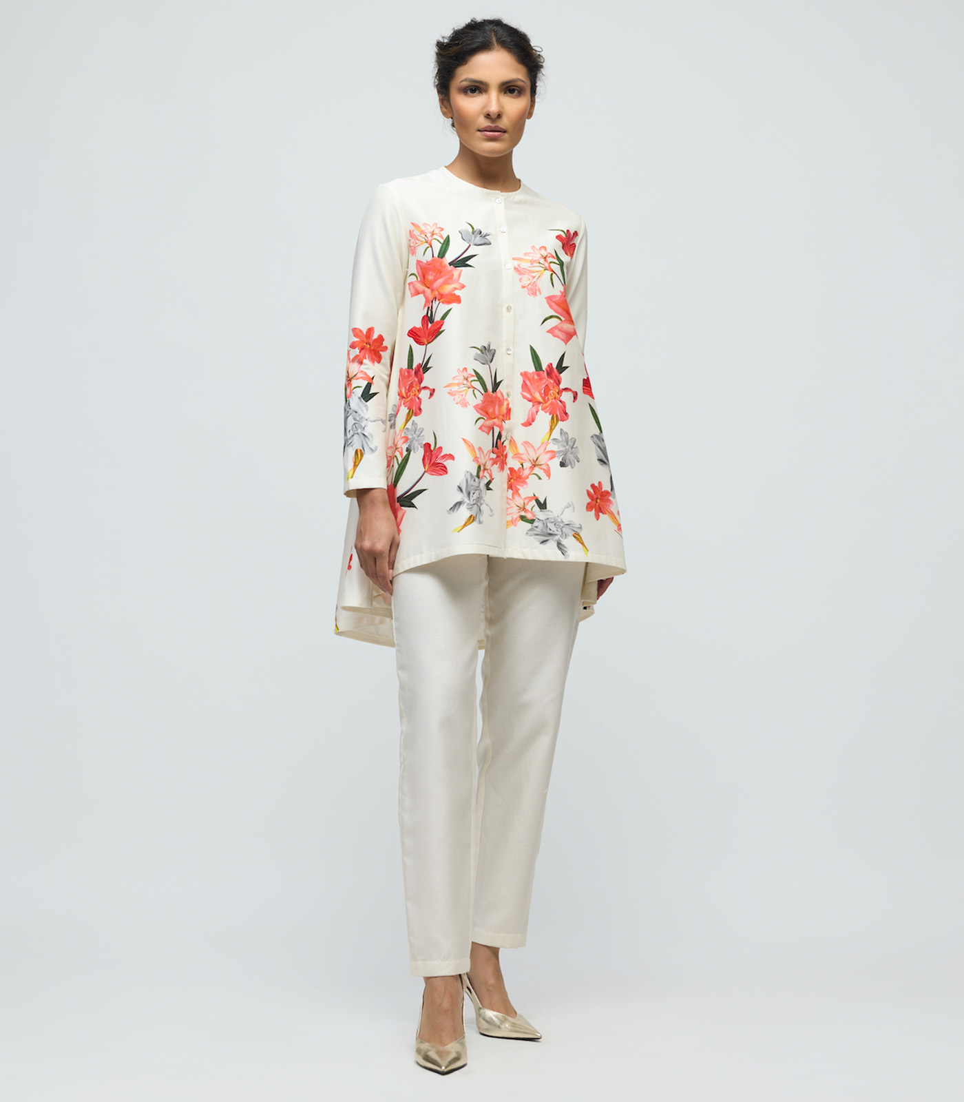 Floral printed Chanderi Tunic Set with Voile Pant