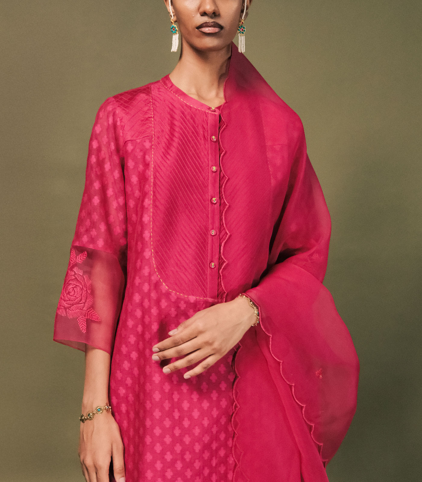FUCHSIA TUNIC SET IN BANARSI BROCADE