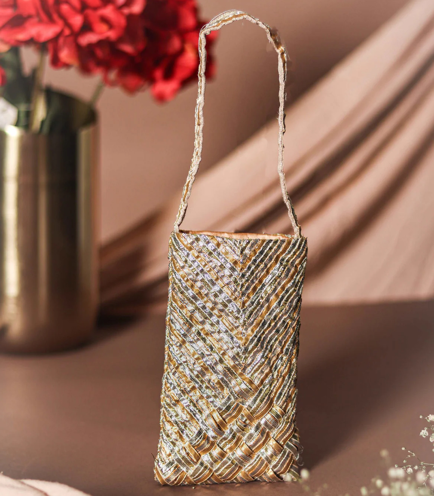 This intricate Rectangular Design Mobile Pouch with Silver and Gold Lappa laces overlapping each other , adds another dimension to any outfit! This is perfect to keep any important IDs, money and your mobile!
