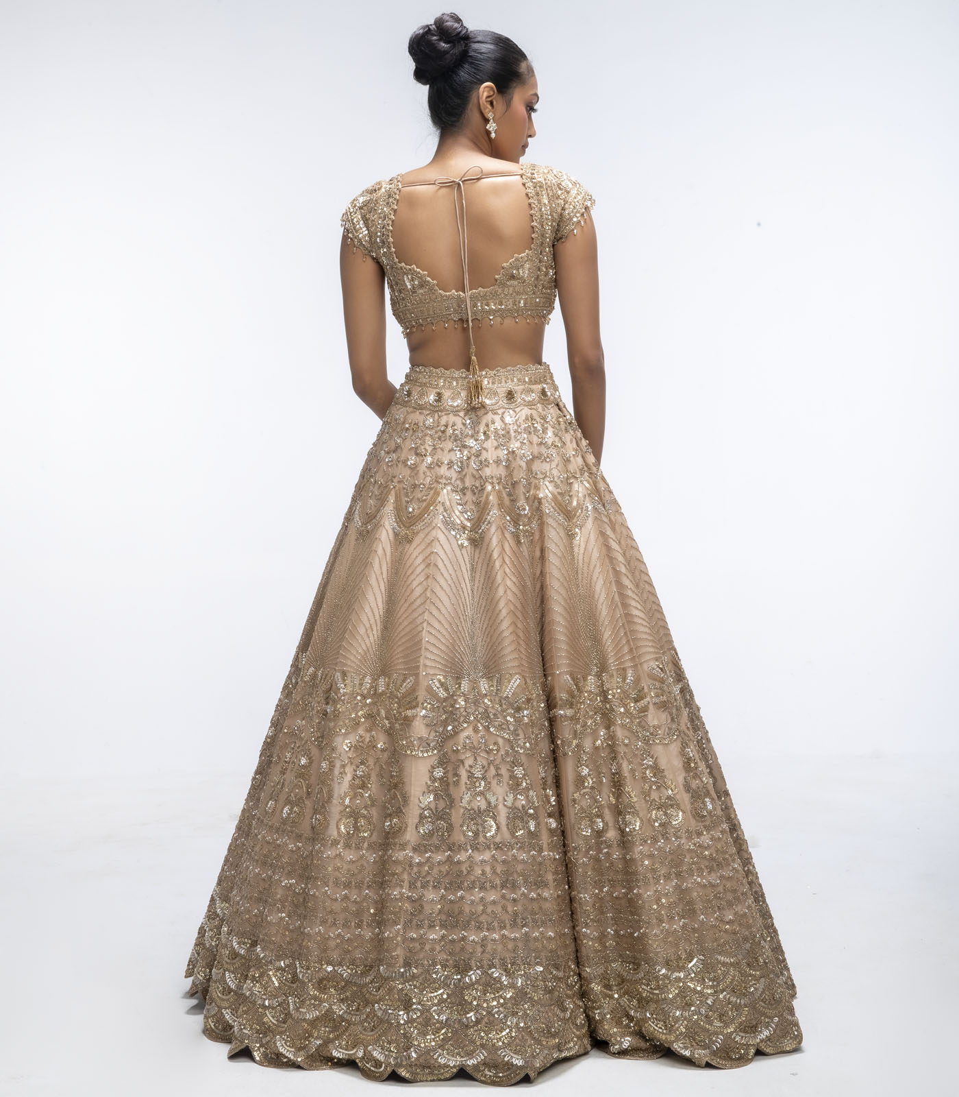 Gold Mirage Pure Silk Sequins Embellished Scalloped Lehenga Set