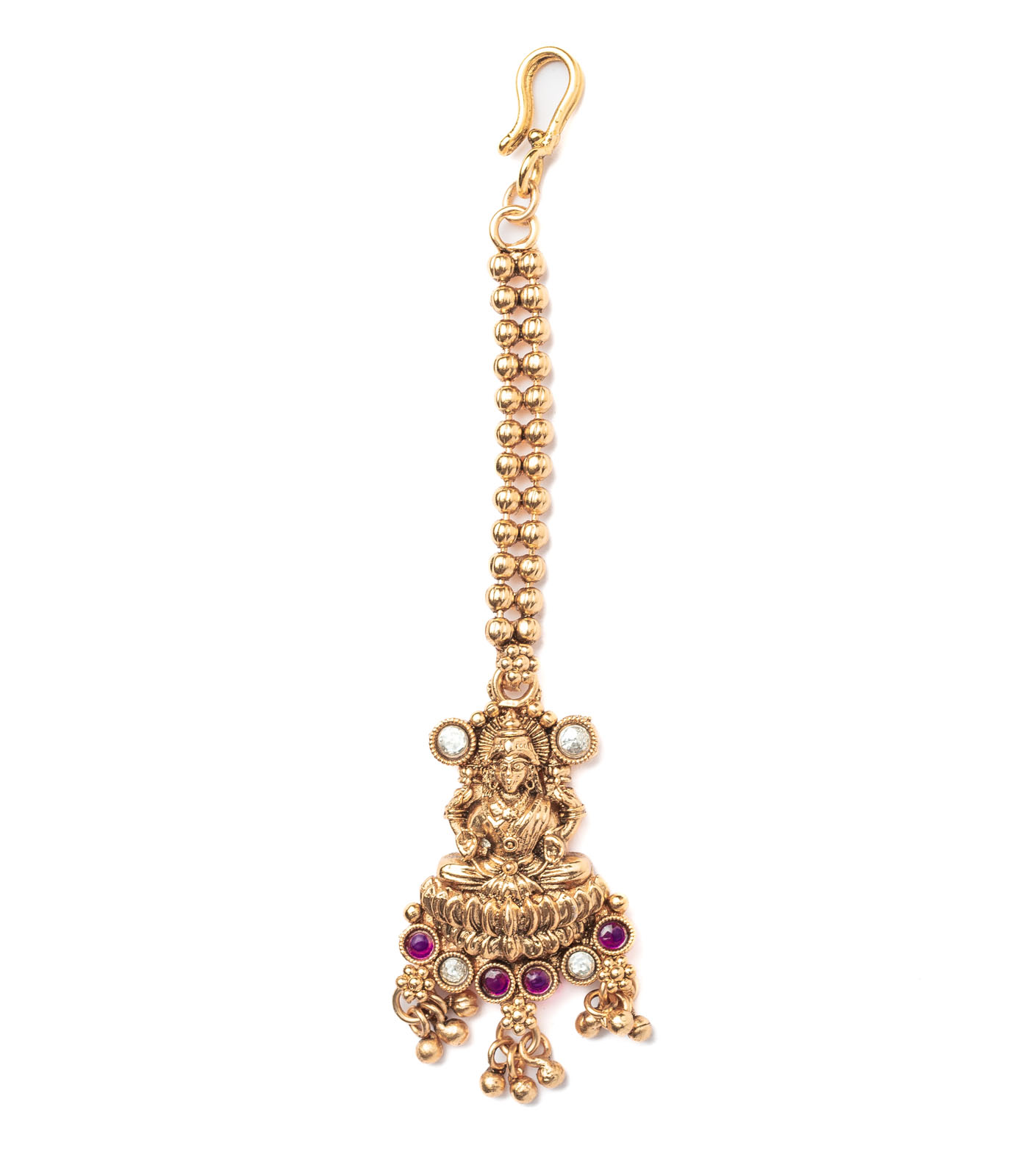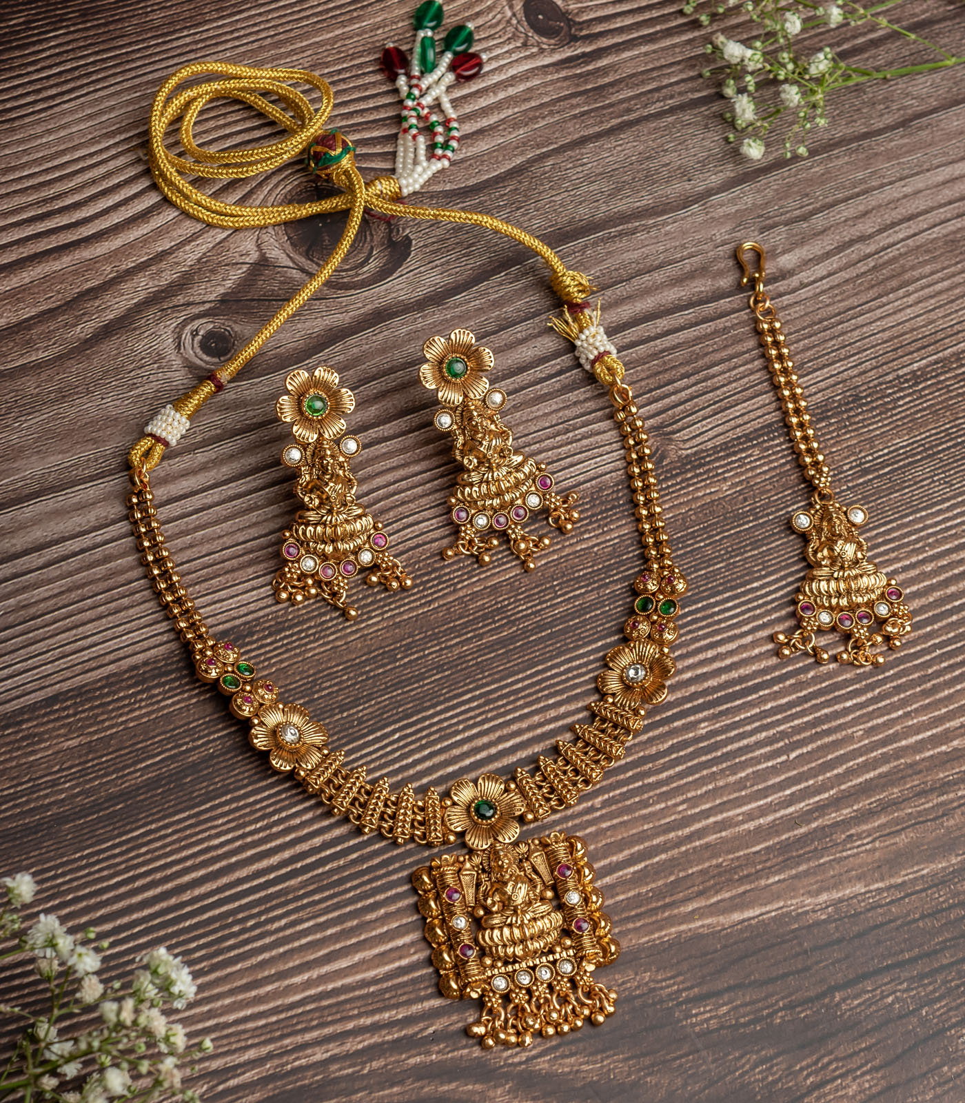 Gold Plated Short Necklace Set with Maangtikka & Pair of Earrings