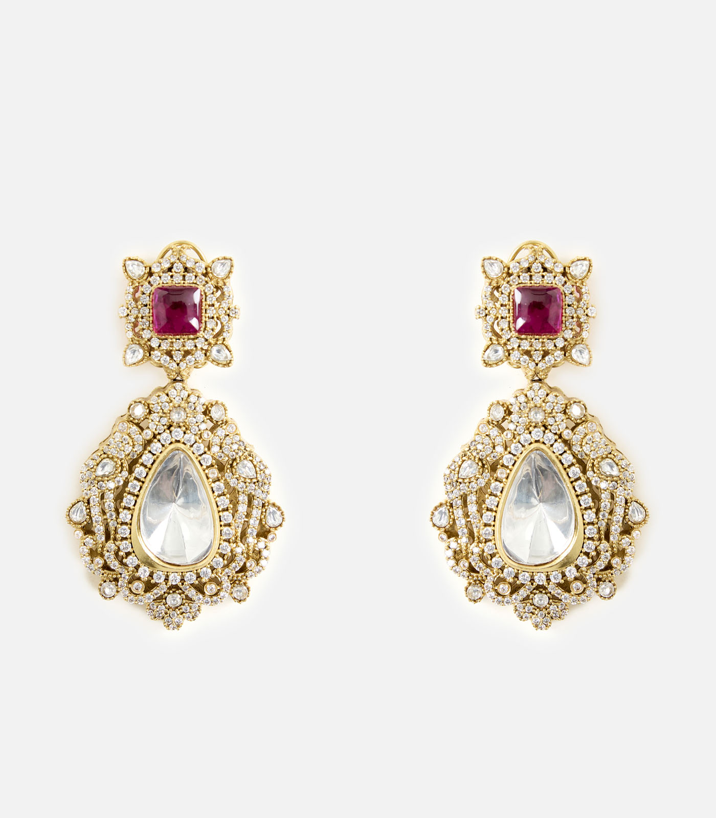 Gold-Toned Teardrop Stone Statement Earrings