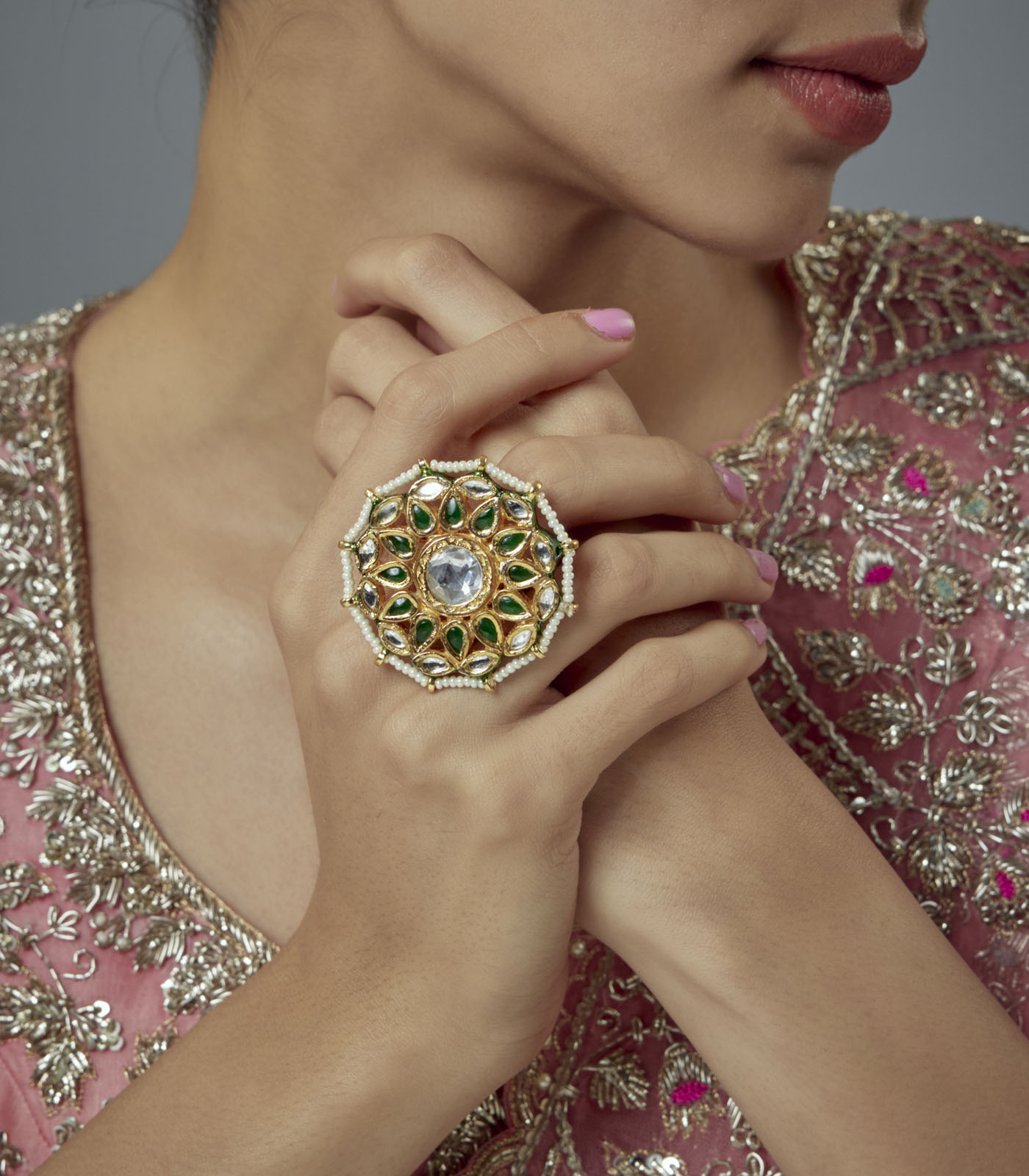 Green Kundan, Polki Womens Ring