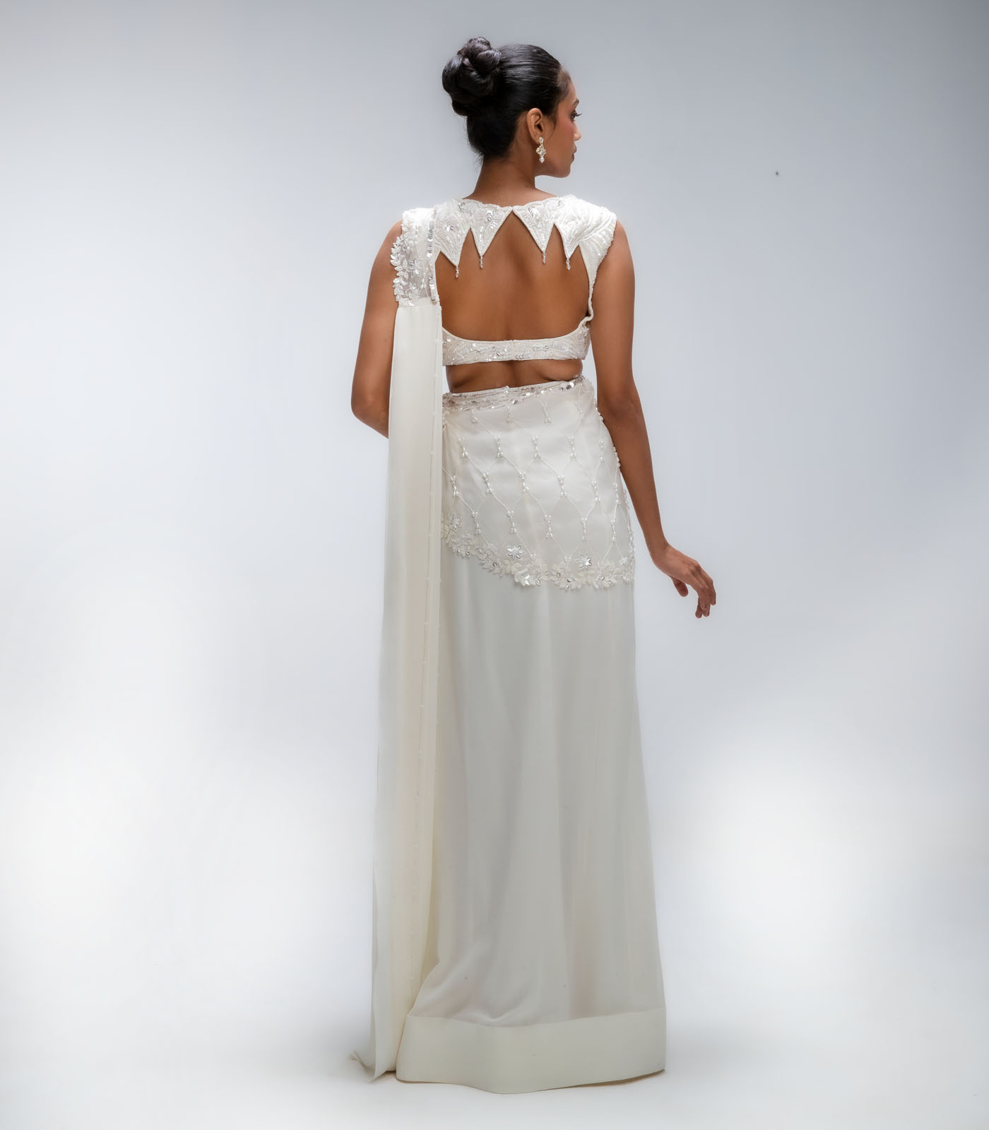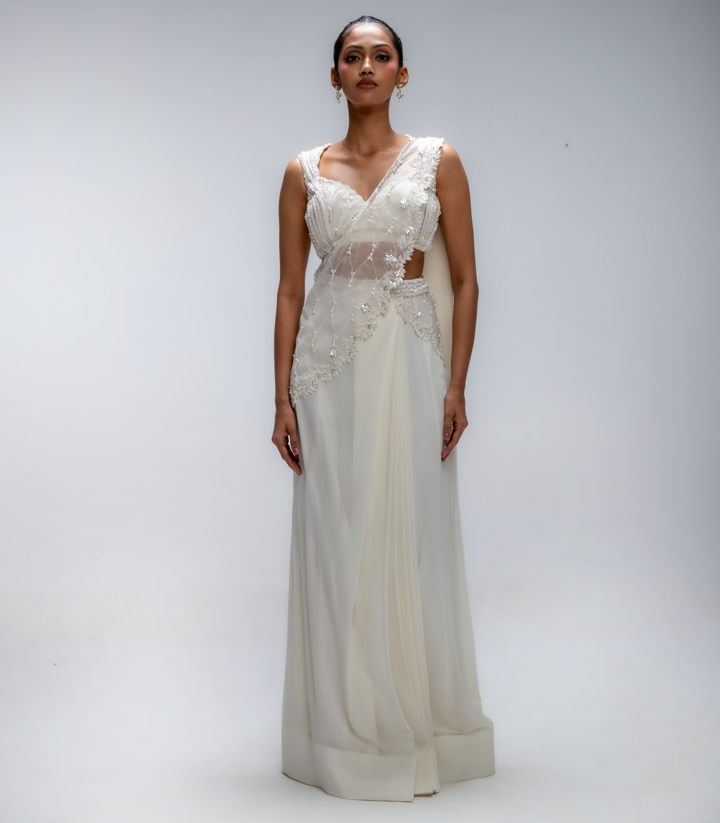 Ivory Illume Pure Silk Organza Embellished Draped Saree Set