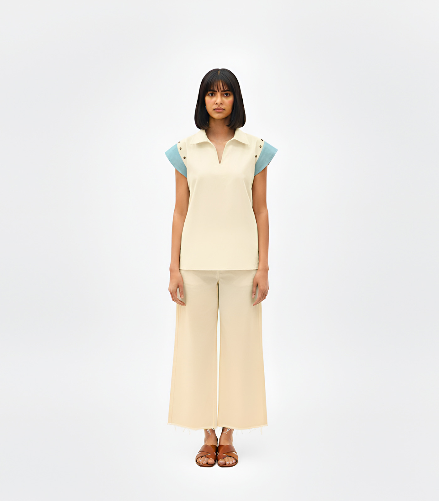 Ivory-Tiffany Blue Colorblock Co-ord Set