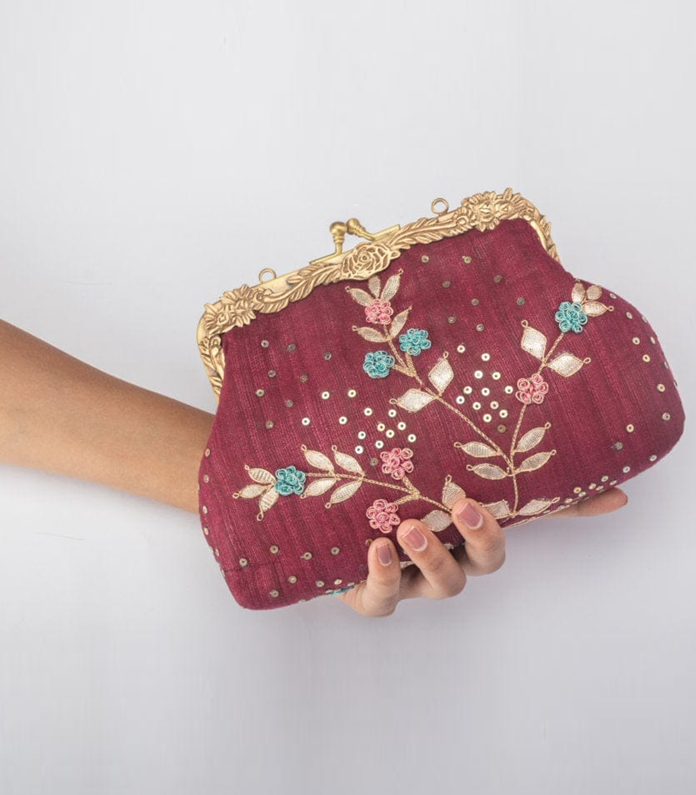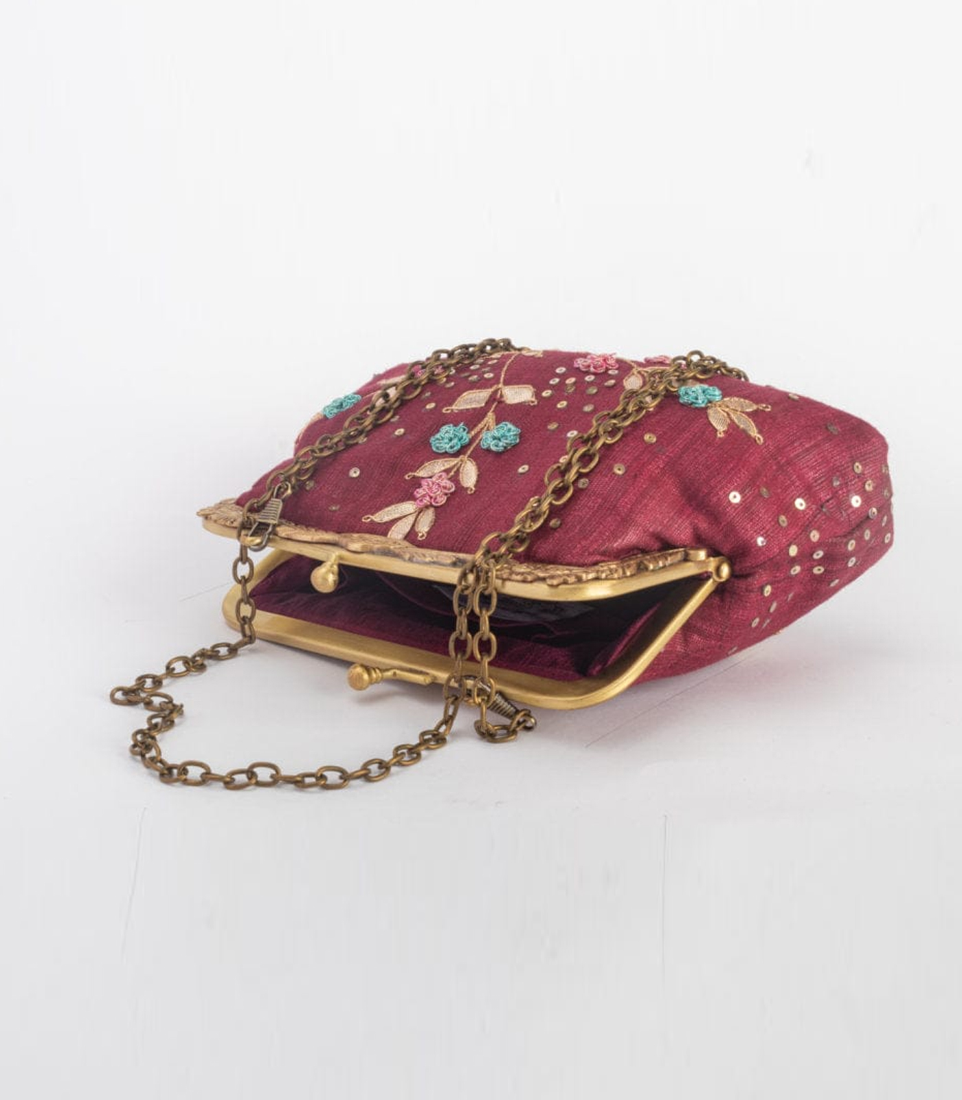 French knot thread work flowers with dori work with few mukesh work golden leaves and spread of rose gold sequin.