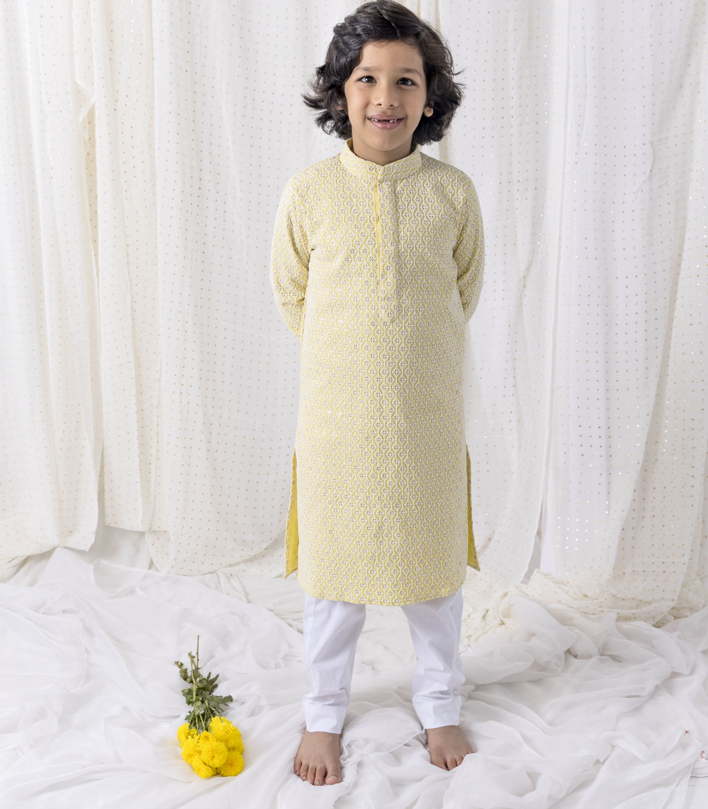 Lemon Sequin And Thread Work Kurta Set