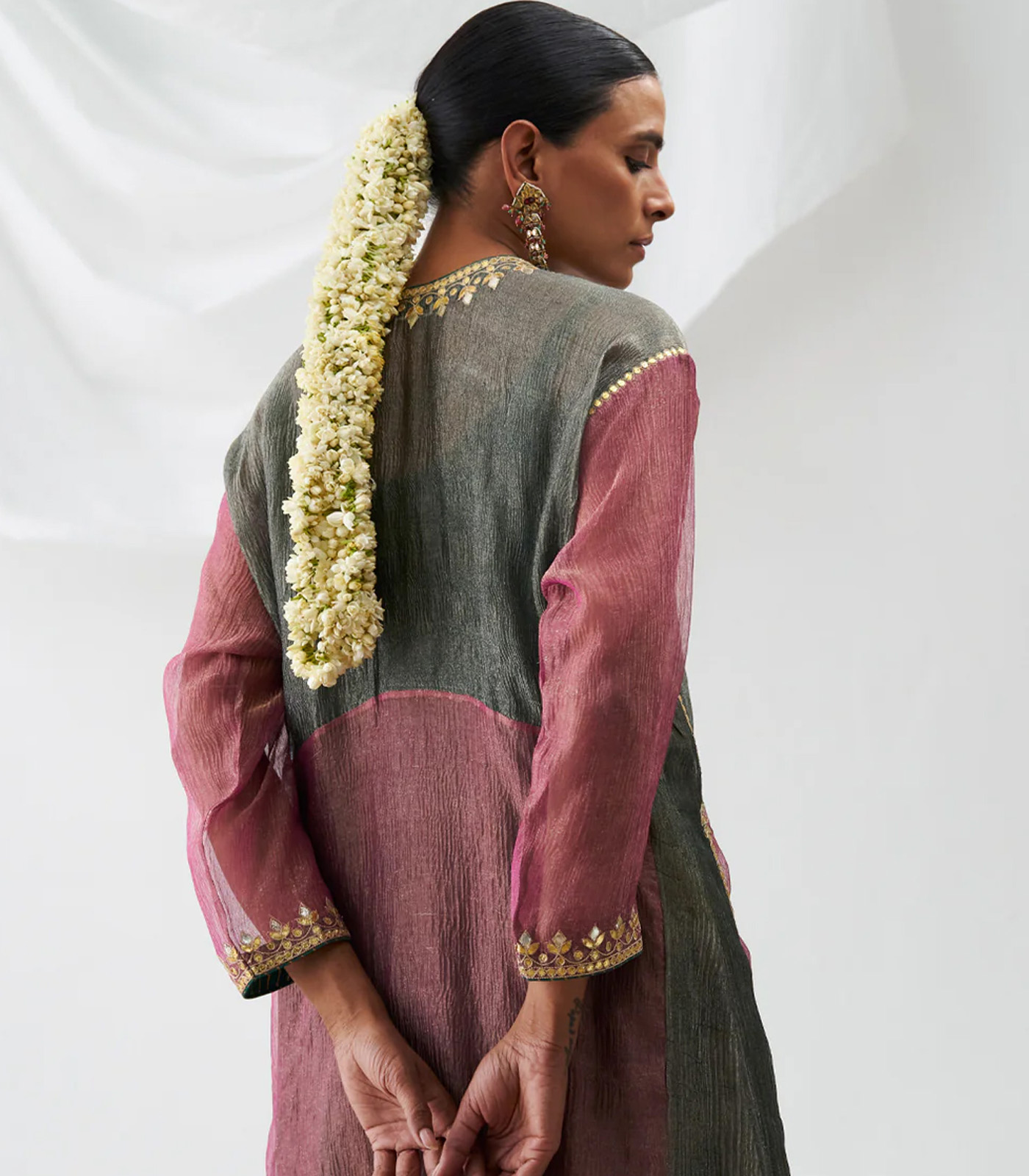 DISCLAIMER: Color may vary in the tissue fabric since it is hand-woven with metal zari, which can naturally cause slight color variation
