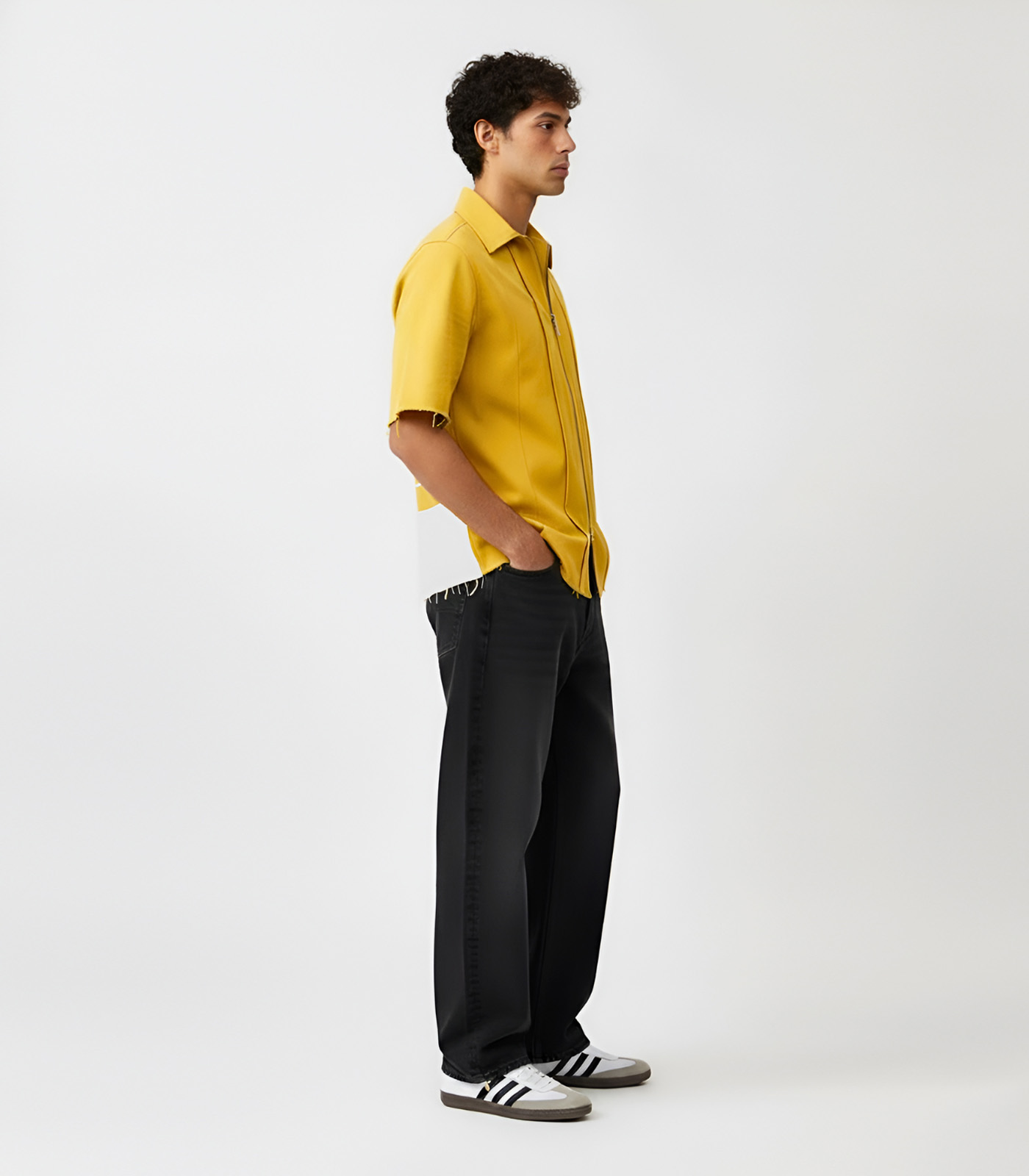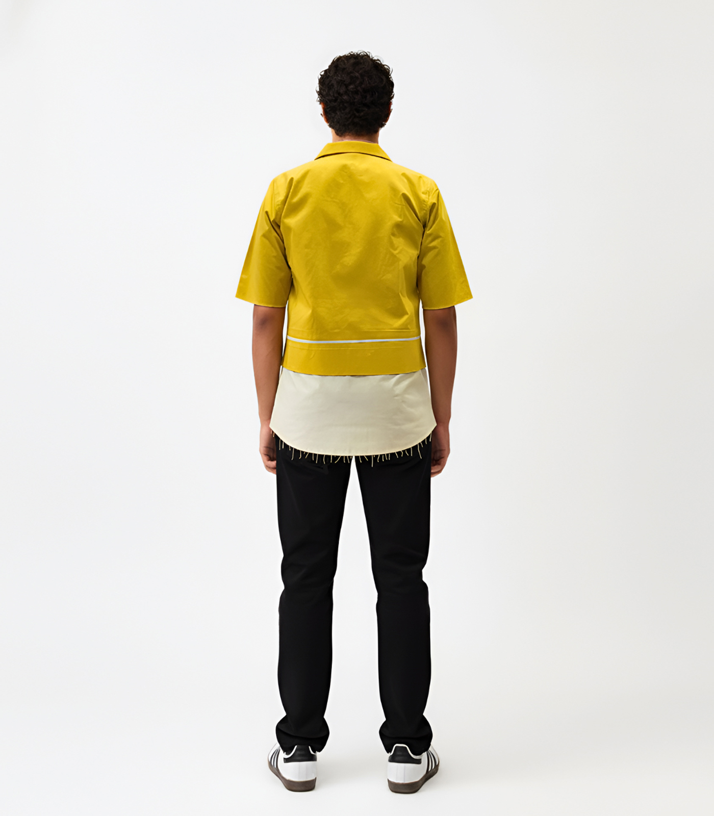 This mango yellow and ivory shirt has a clean, tailored design with a patch detail on the back. The front has pintucks on both sides of a zip opening, giving it a neat look. It comes with a classic collar for a simple finish. Easy to style for work or casual wear, this shirt is practical and versatile.