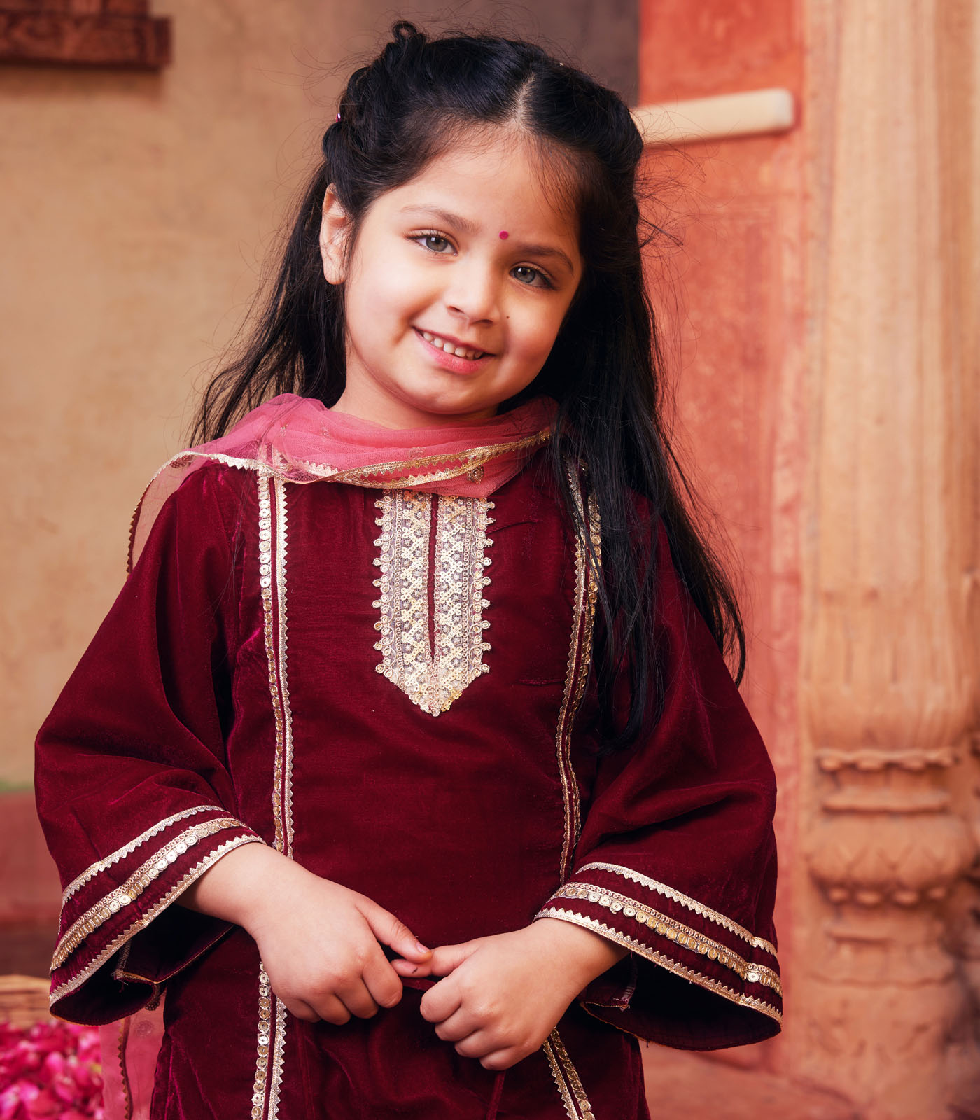 Maroon kurta with matching salwar and dupatta