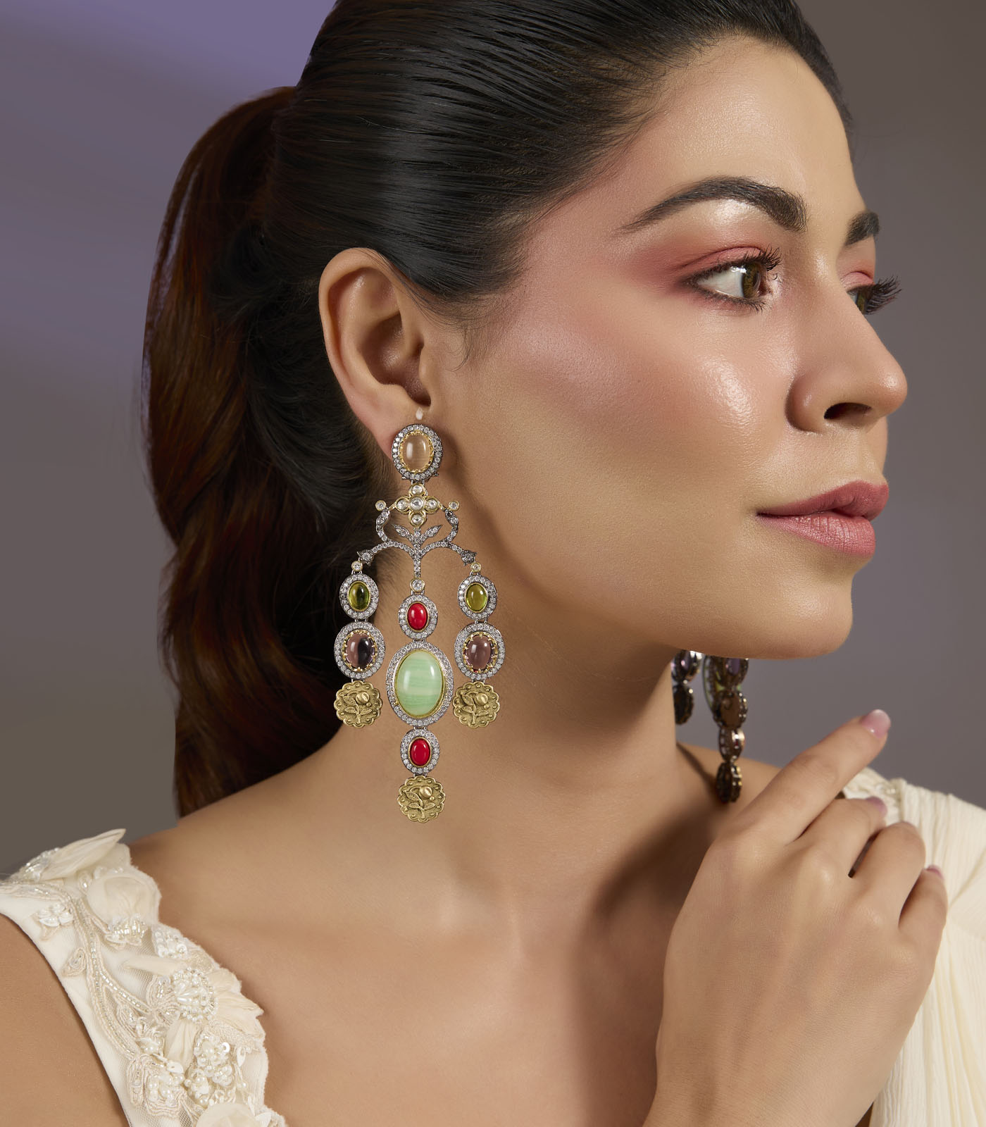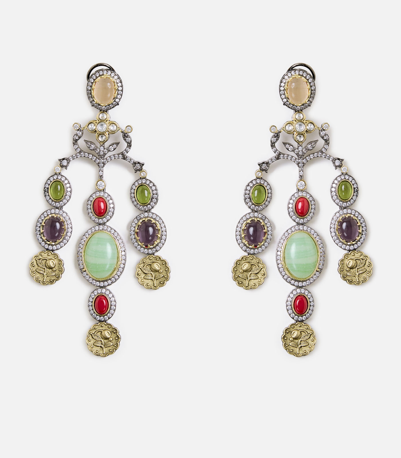 Add a pop of elegance with these multicolor statement dangler earrings, featuring intricate detailing, pastel stones, and a bold design. Perfect for weddings, festive wear, and parties.