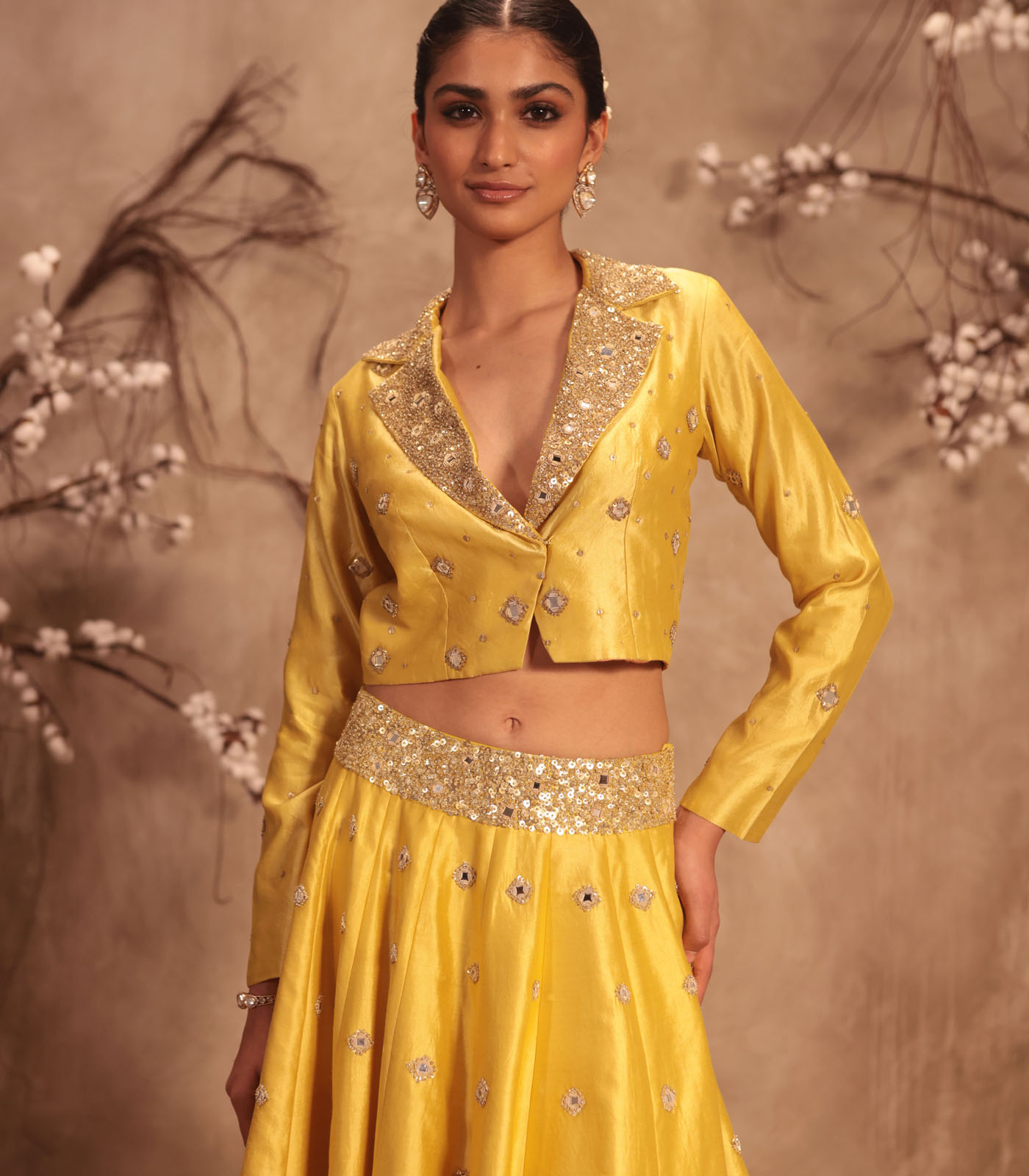Nazakat Yellow Heavy Jacket Style Lehenga Set