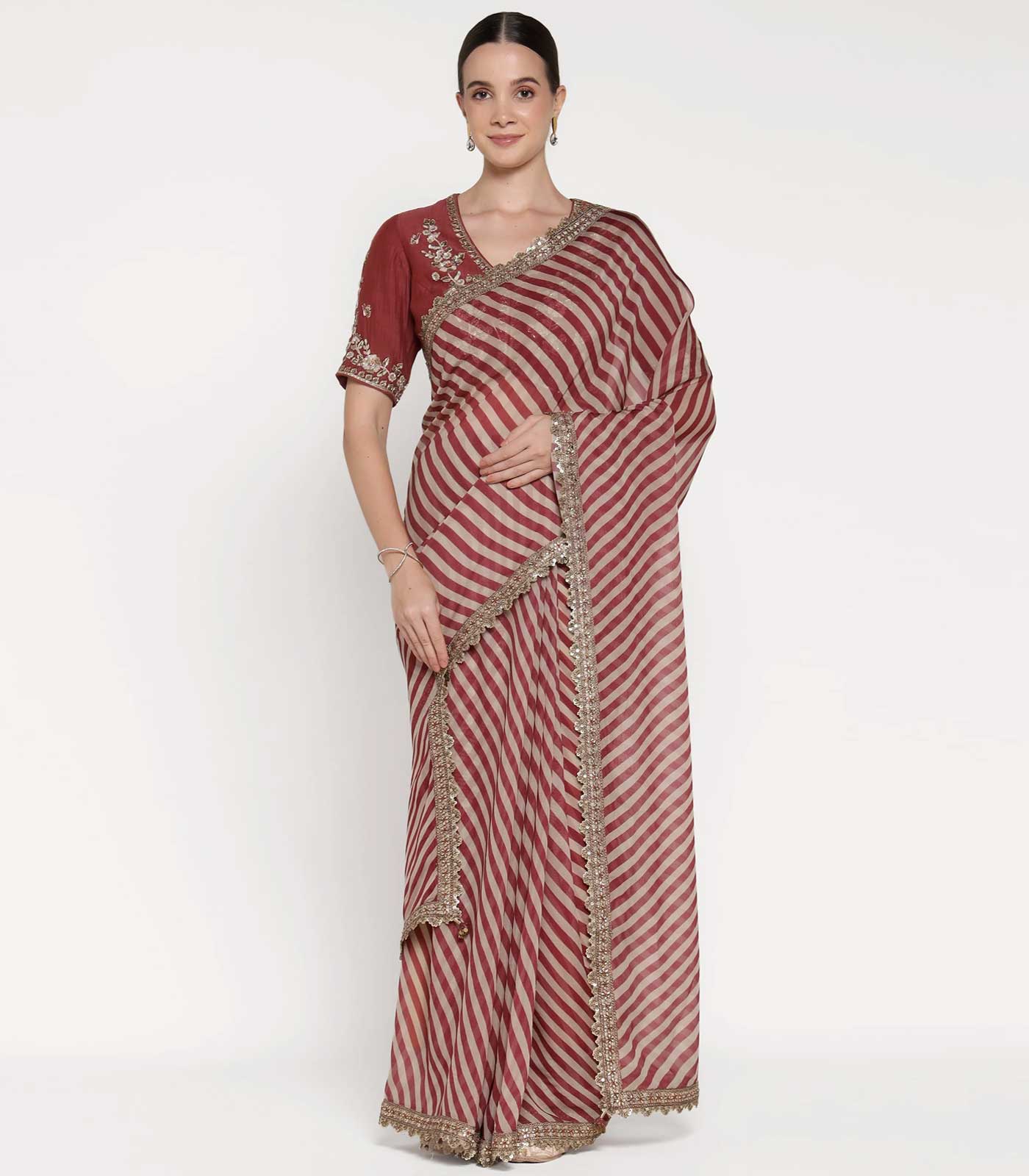 In black paper silk, the Black Noor E Summer Saree Set comes alive with baroque embroidery with dabka and playful parrot motifs. Soft to touch and rich in detail, it complements evening festivities and dusky soirées with understated allure. An ode to the soirées where elegance reigned supreme.