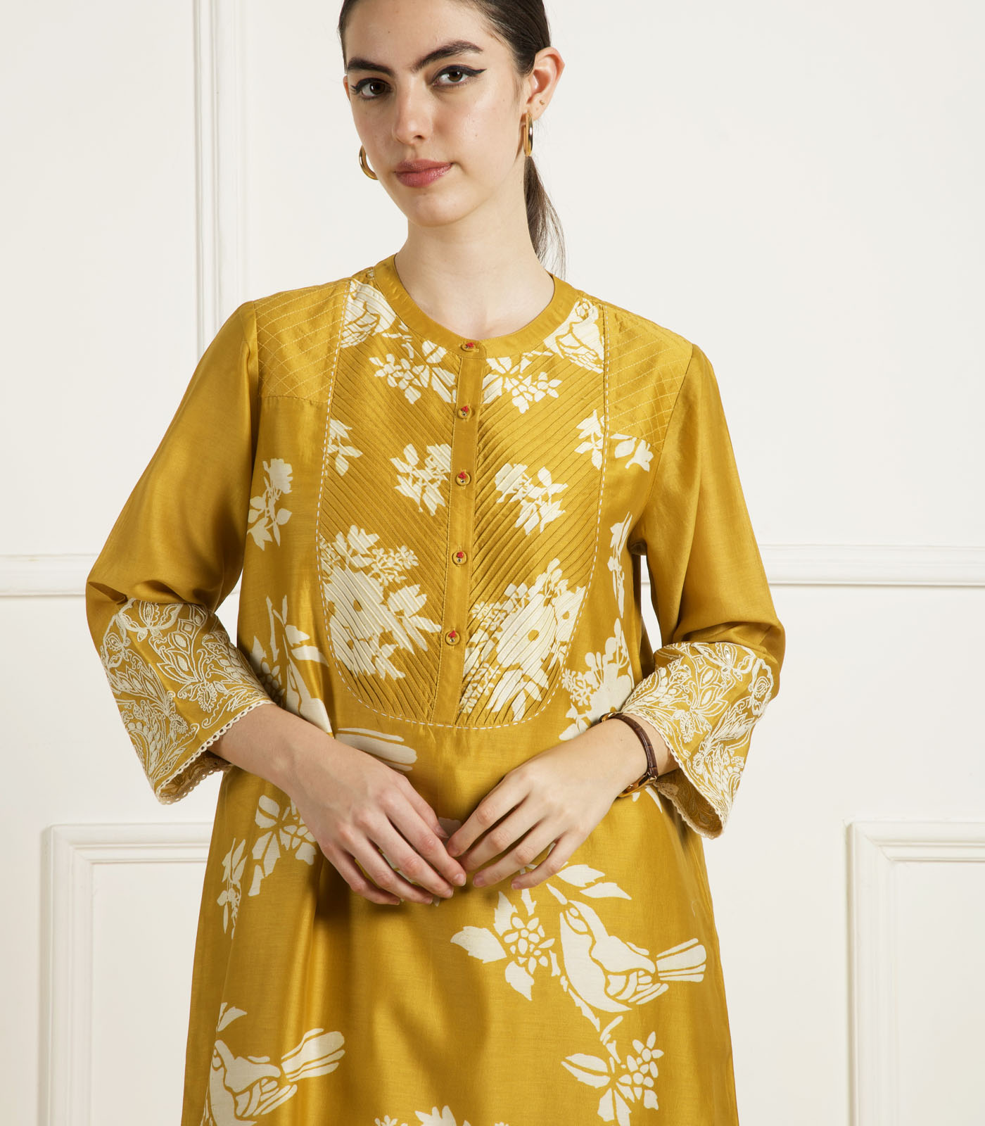 OCHRE DISCHARGE PRINT TUNIC IN SILK CHANDERI
