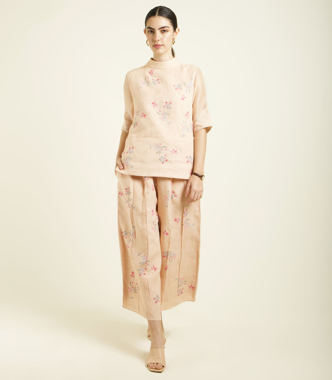 OLD ROSE PRINTED TOP WITH CULOTTES IN LINEN