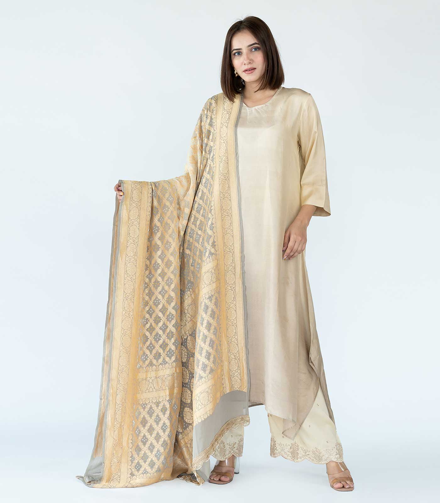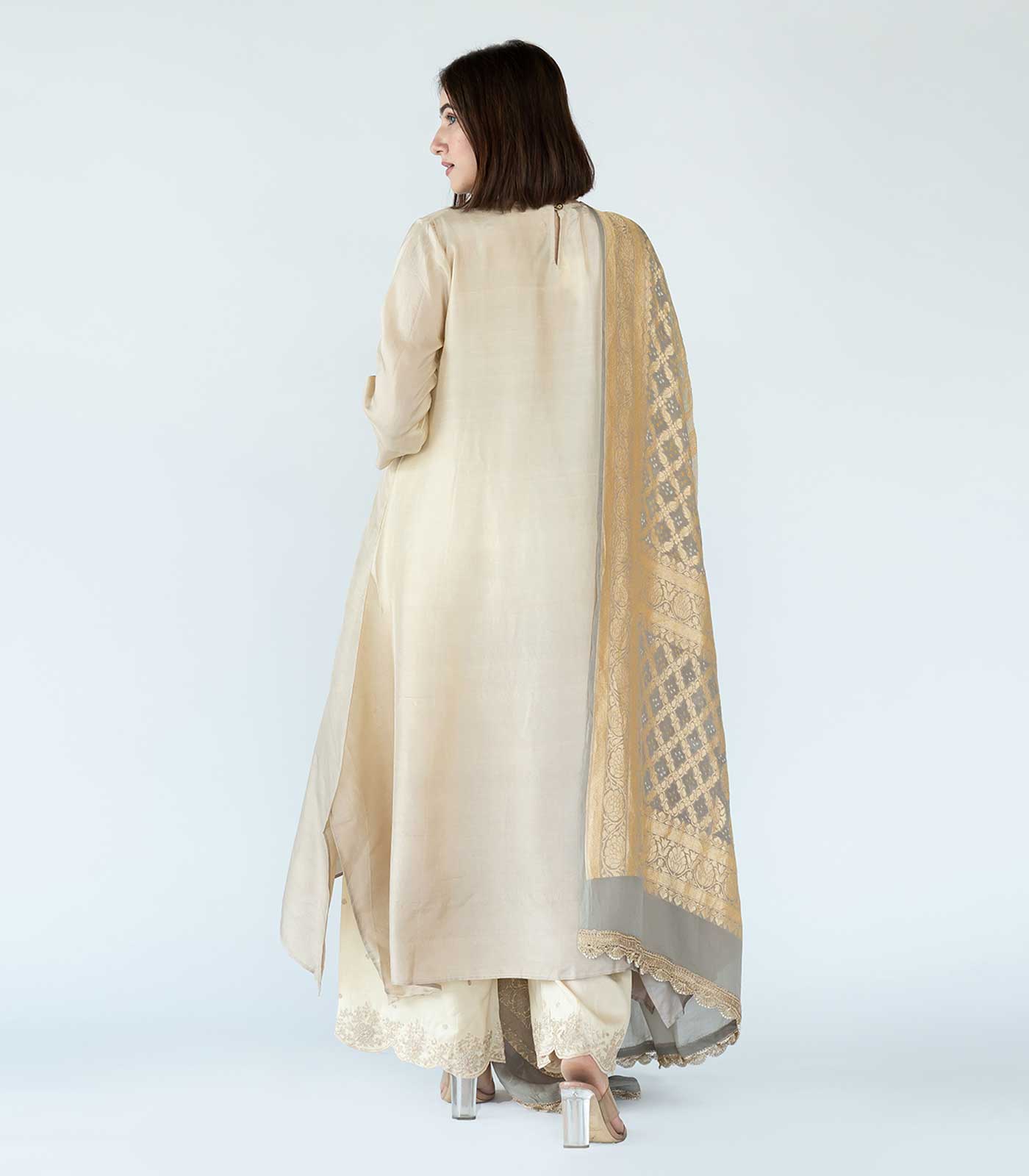 This product will be exclusively handcrafted for you, making the colour/texture/pattern slightly vary from the image shown, due to multiple artisan-led techniques and processes involved.The dupattas and printed stoles may differ in actual product when received as each piece is uniquely handmade but the shades would be the same overall.