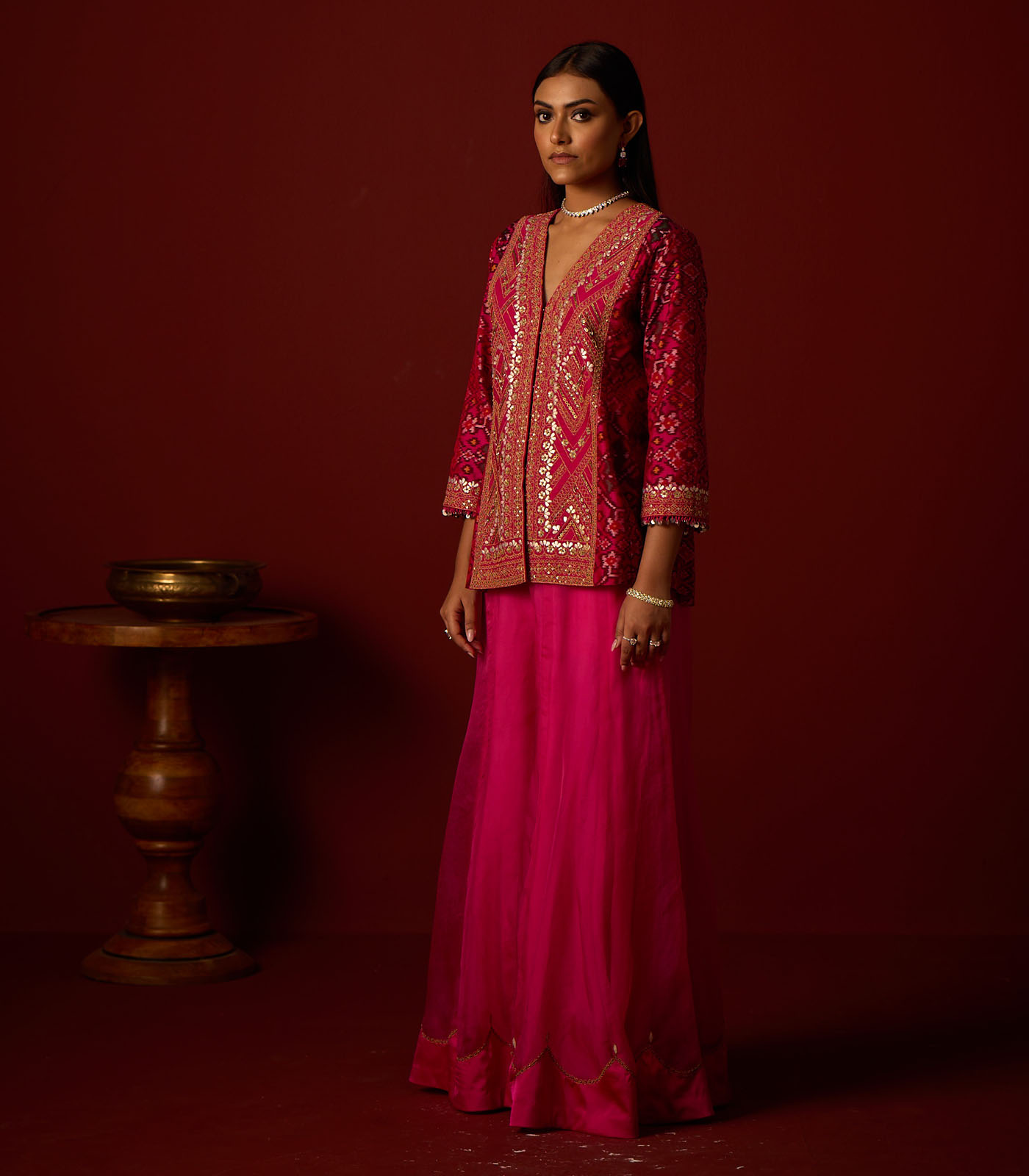 Patola Peplum Jacket, Embellished With Marodiwork And Beadwork, Enhanced With Tassel Details And Inner Finishes