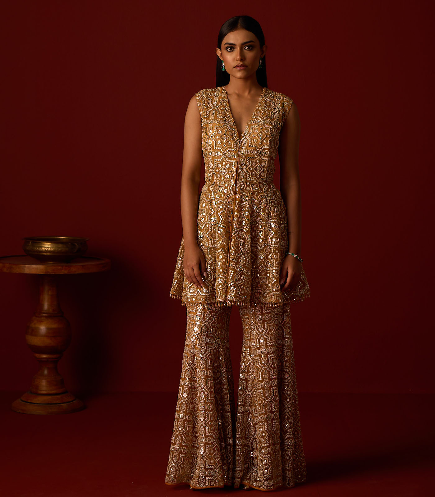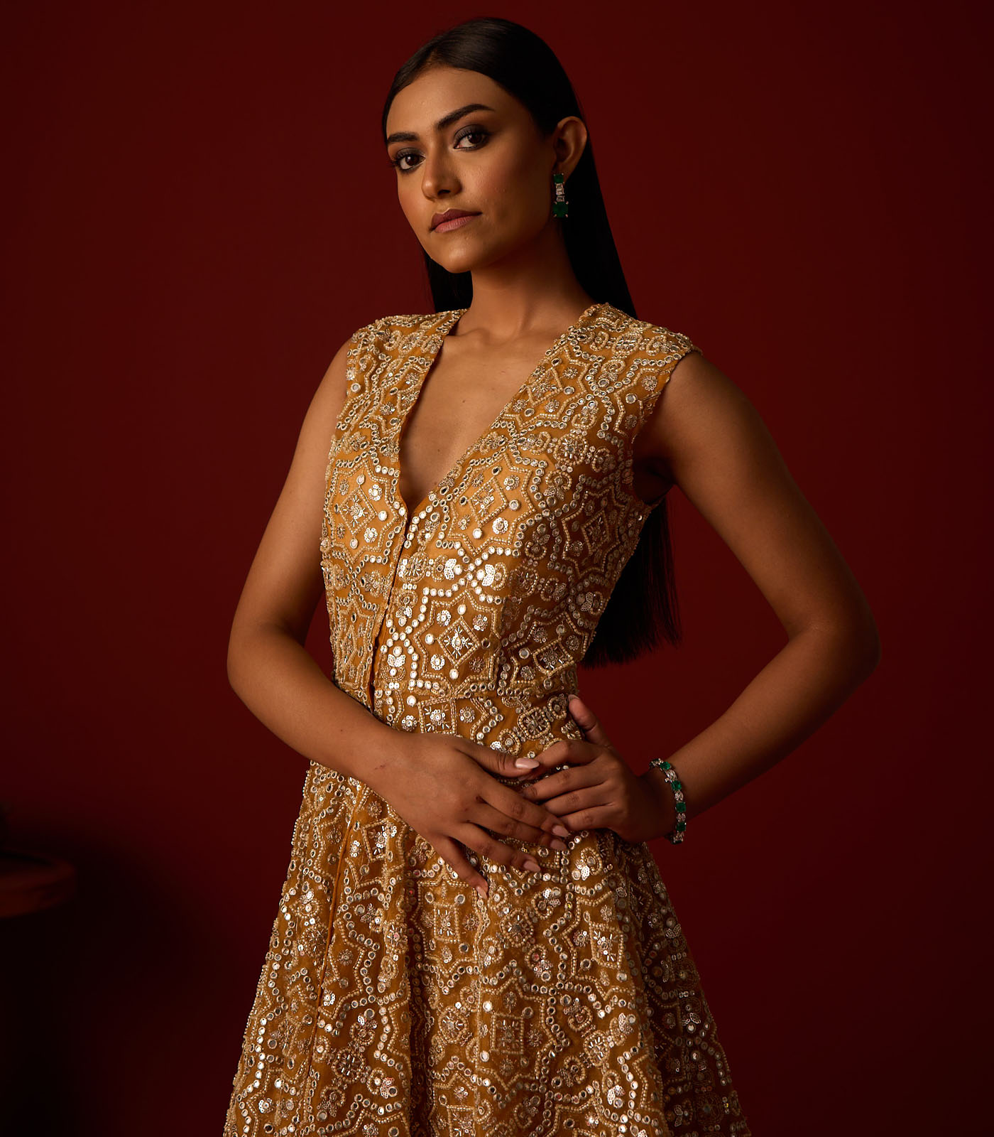 | Fabric | This mirrorwork beadwork net fabric is specially designed by our team and is crafted with great care and precision. The garment is then styled at our workshop with finest details. |