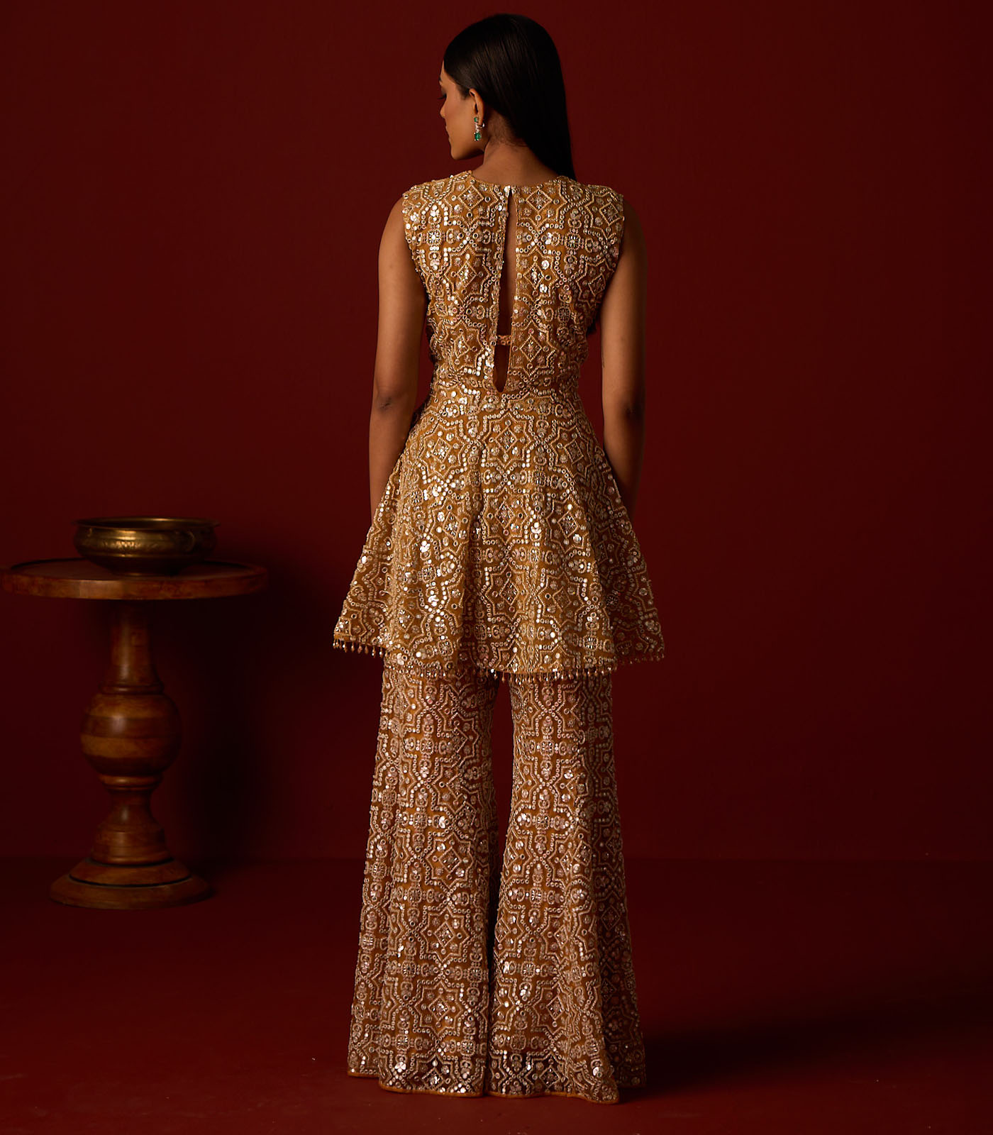 Embellished Sleeveless Peplum Top With Mirrorwork Beadwork On Tulle