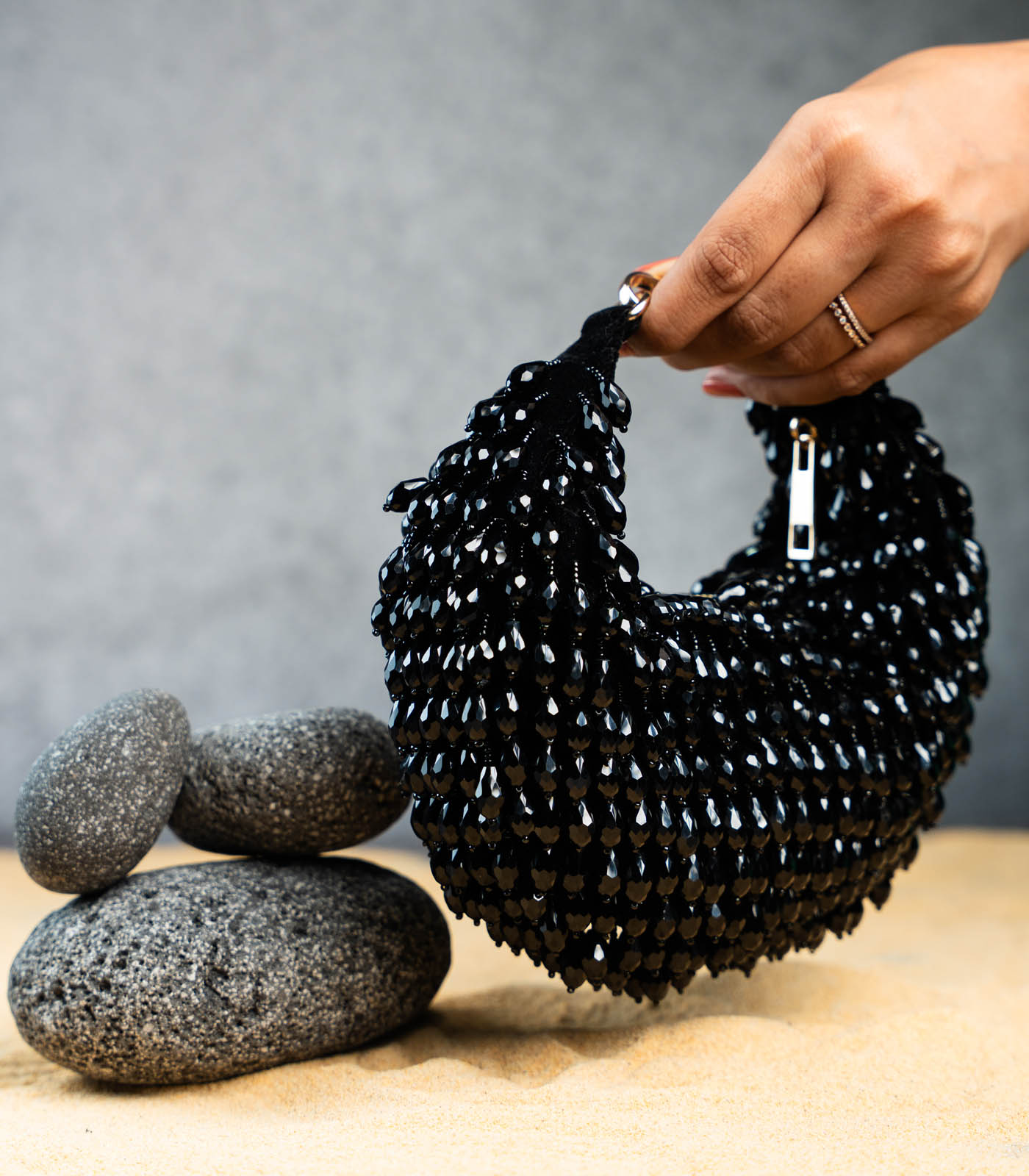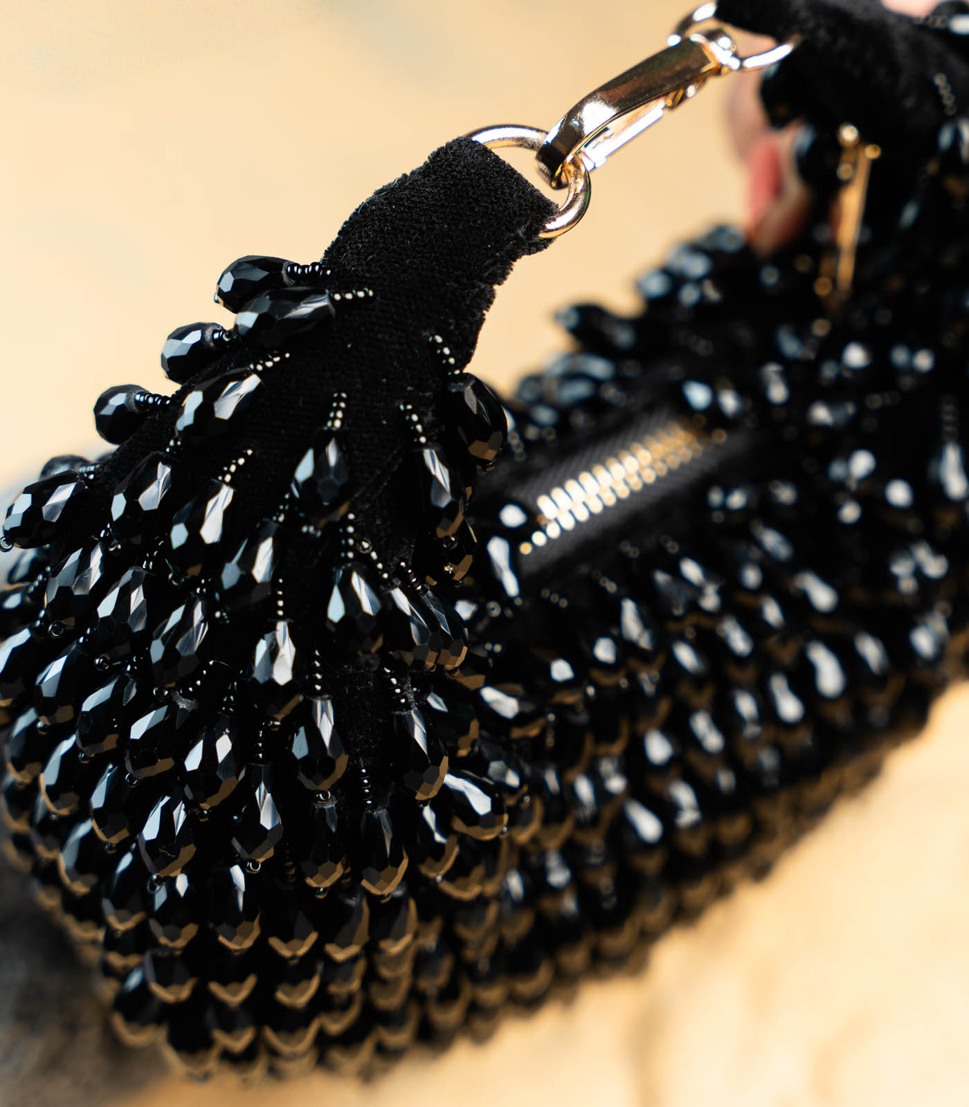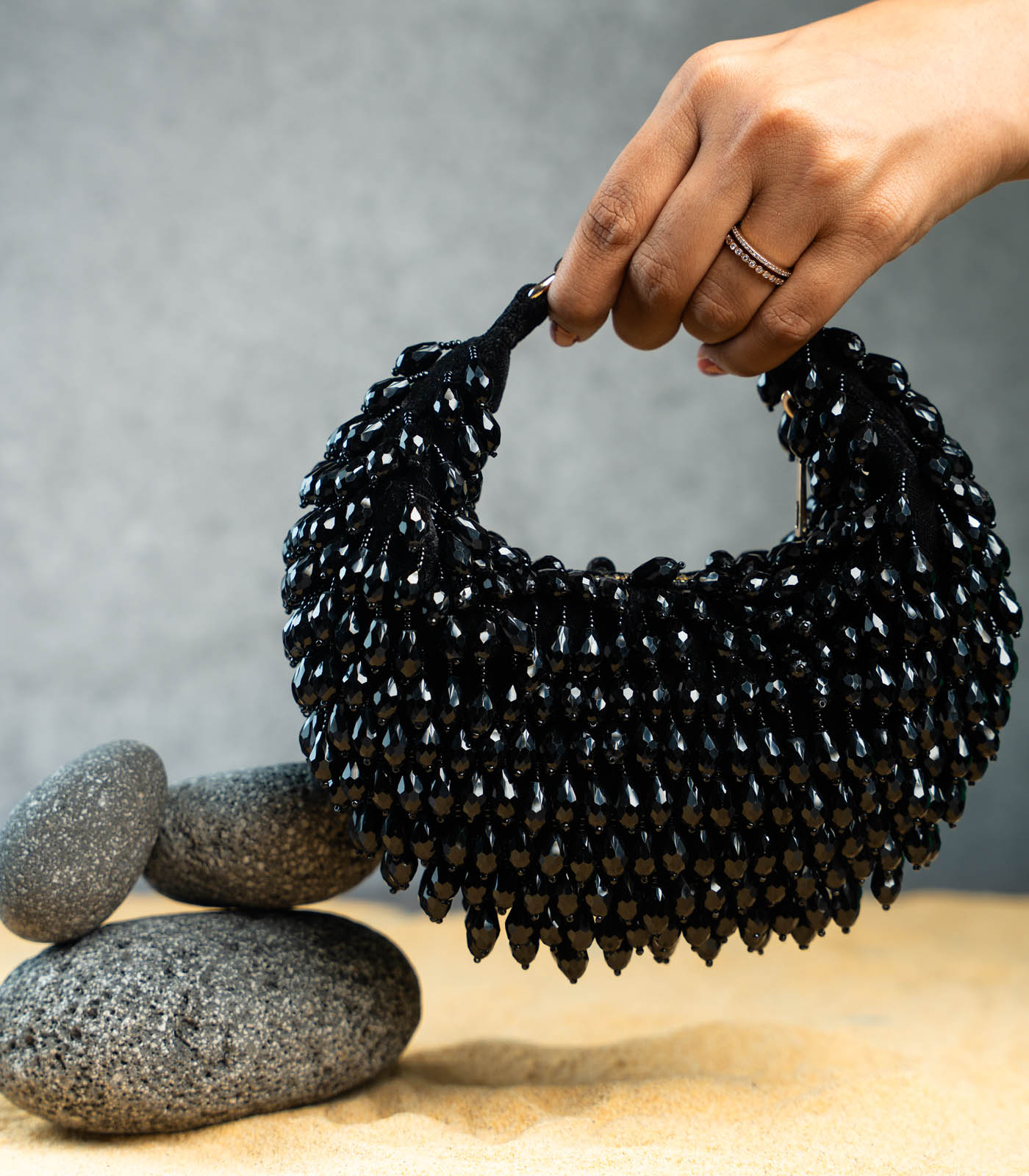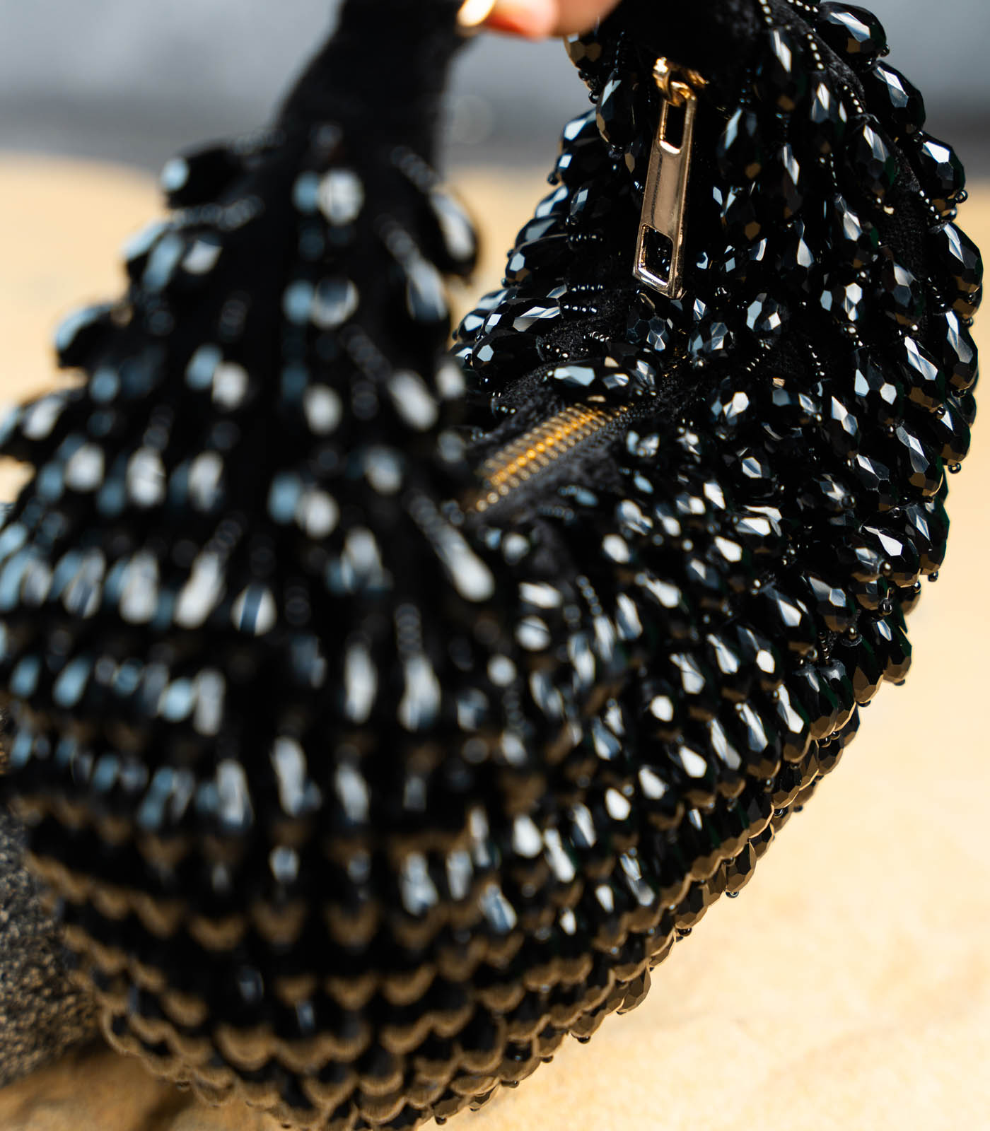 The Pristine Sailor Noir is an exquisite blend of craftsmanship and contemporary style. Hand-embellished with hundreds of jet-black teardrop beads, it glimmers subtly under the light, creating a rich, textured finish that feels both bold and refined. The soft yet structured silhouette, paired with gold-toned hardware, adds a touch of understated luxury. Compact and elegant, it’s designed to carry your essentials while making a statement — perfect for evening outings, celebrations, or anytime you want to elevate your look with effortless sophistication.