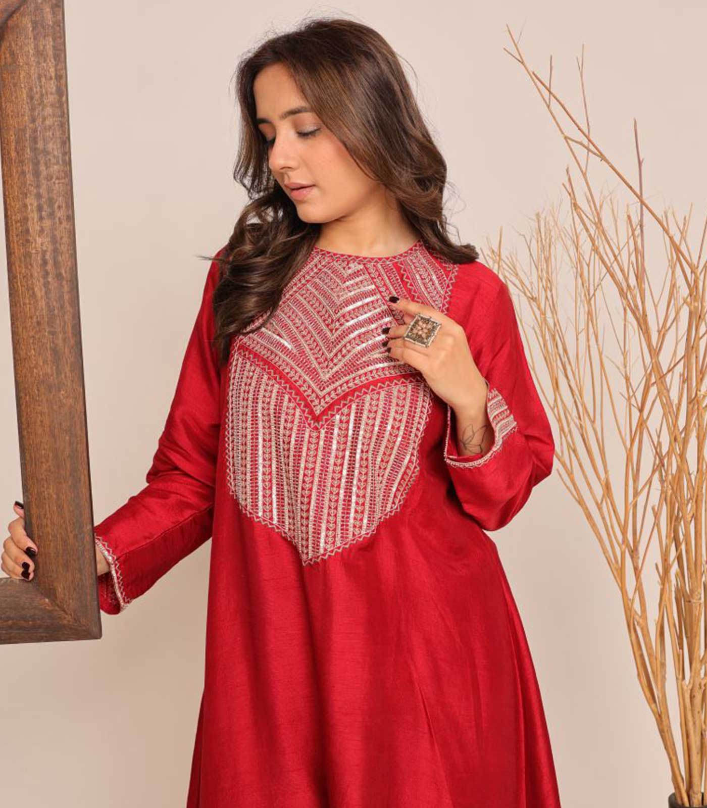 Our hand-embroidered red cord set is perfect for a night out with your loved one.