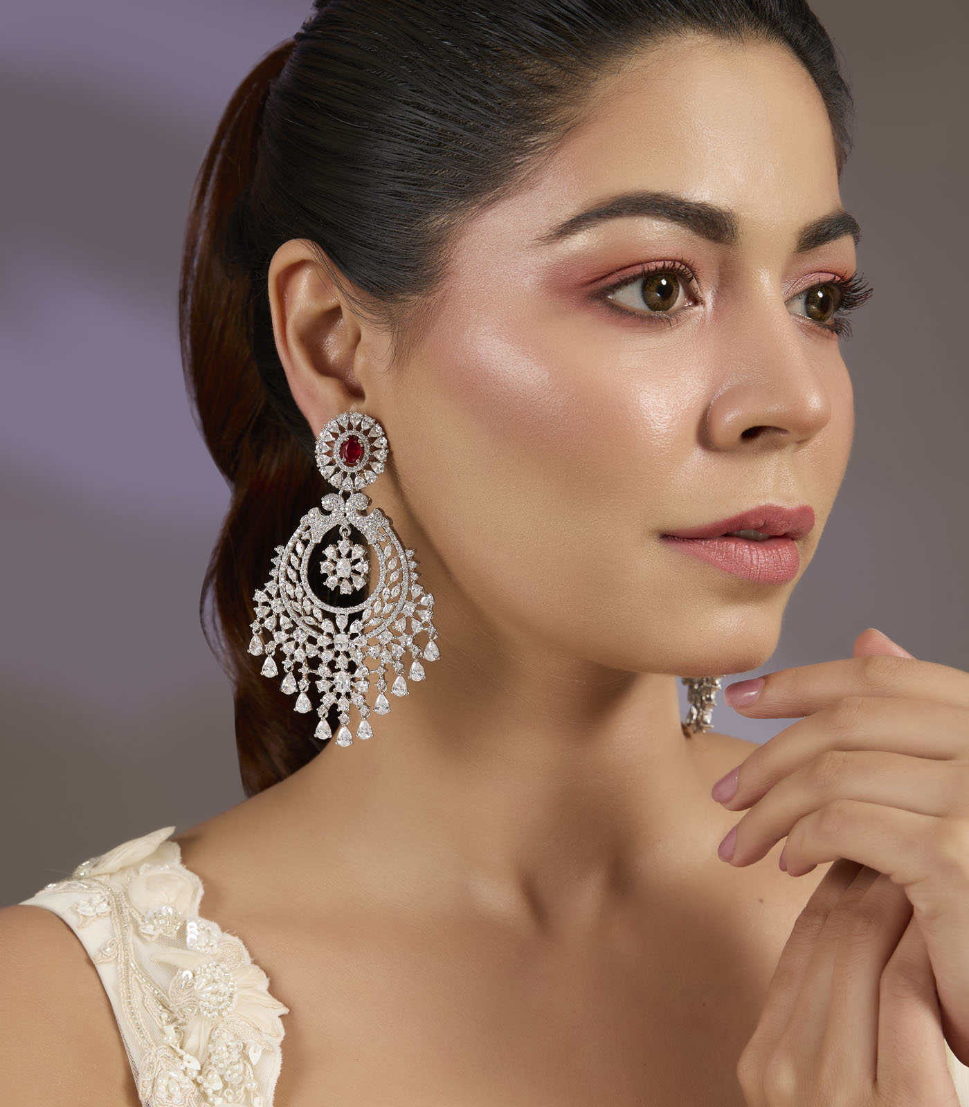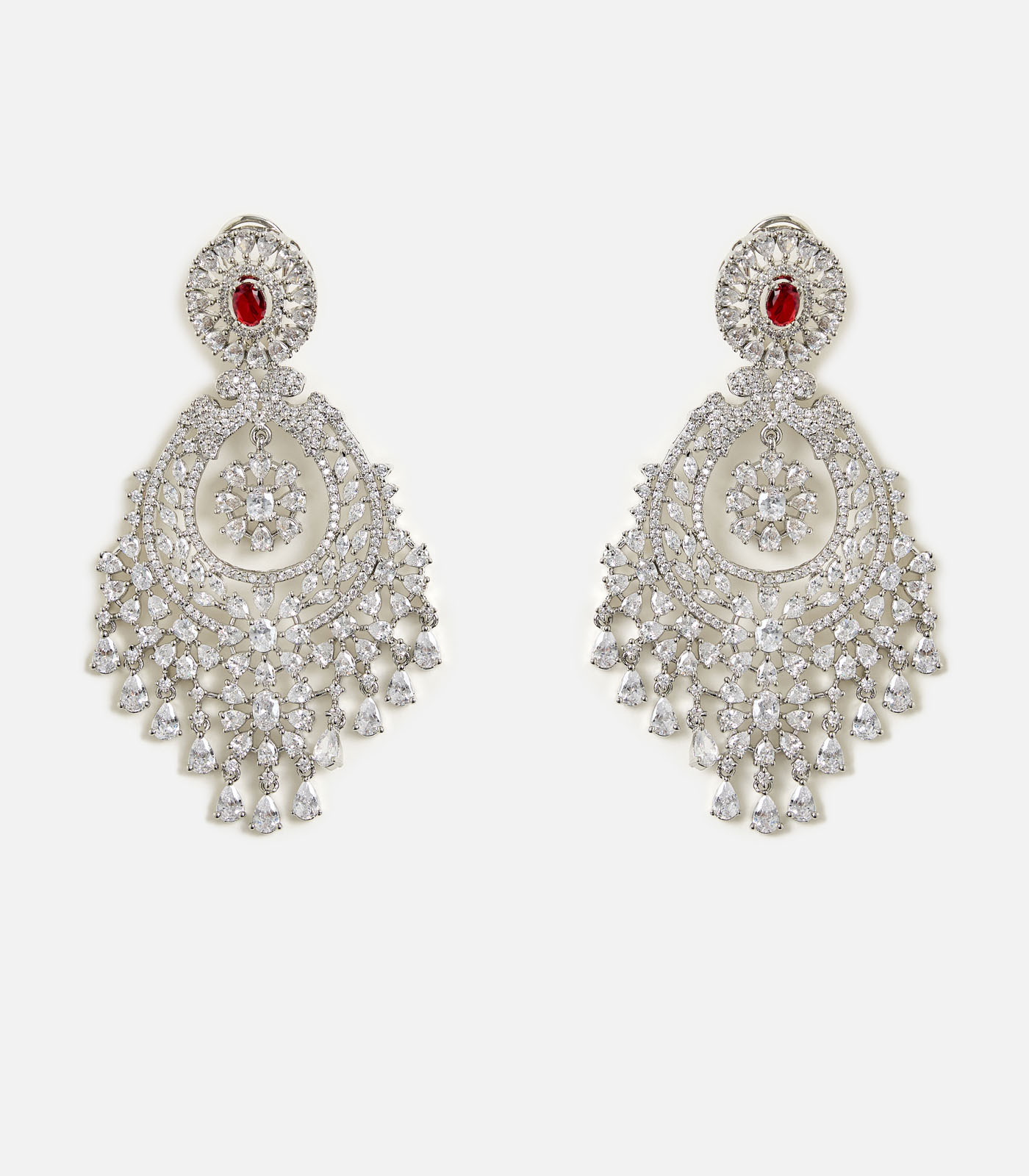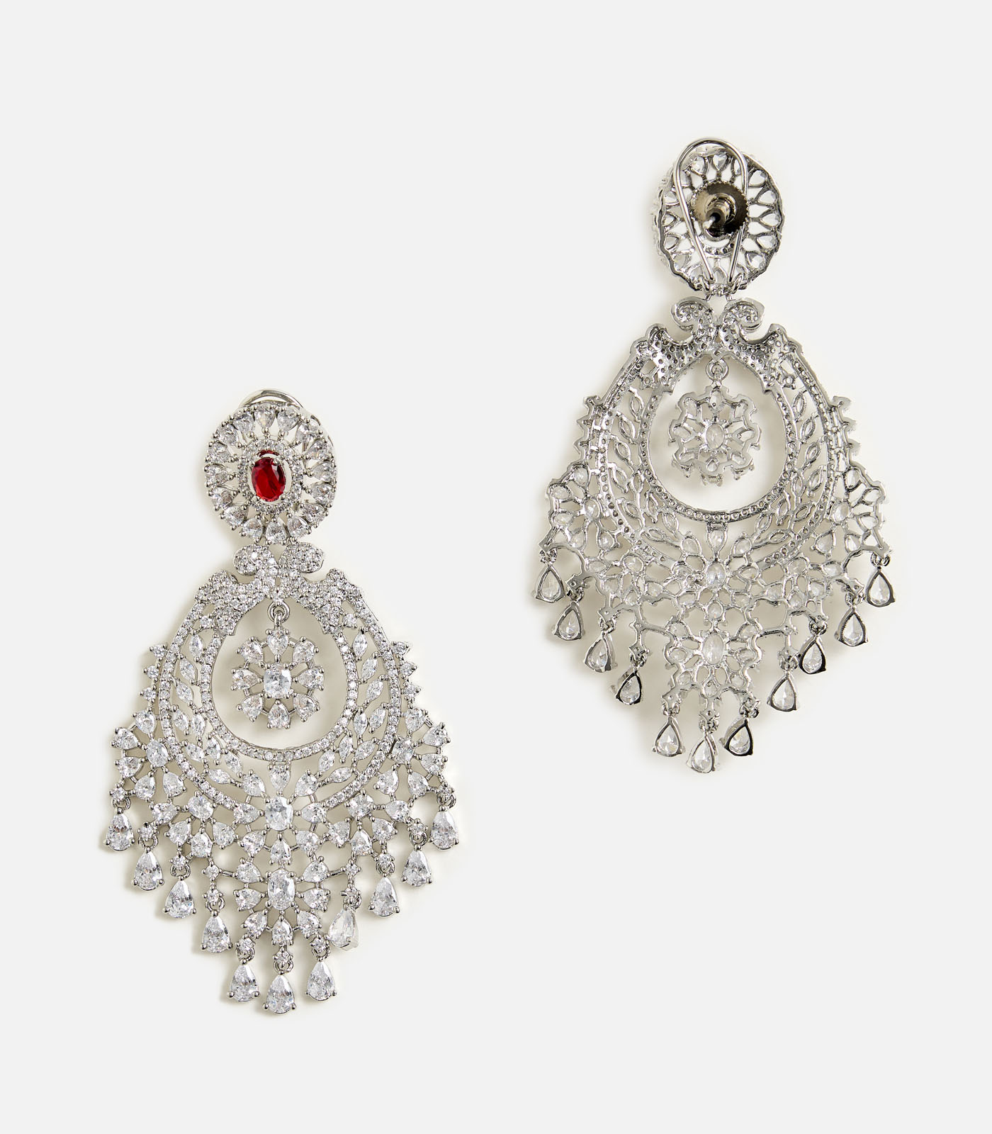 This stunning chandelier earring features a bold Red Onyx stone centerpiece adorned with sparkling cubic zircons. Lightweight yet statement-making, it’s perfect for weddings, parties, and festive celebrations.