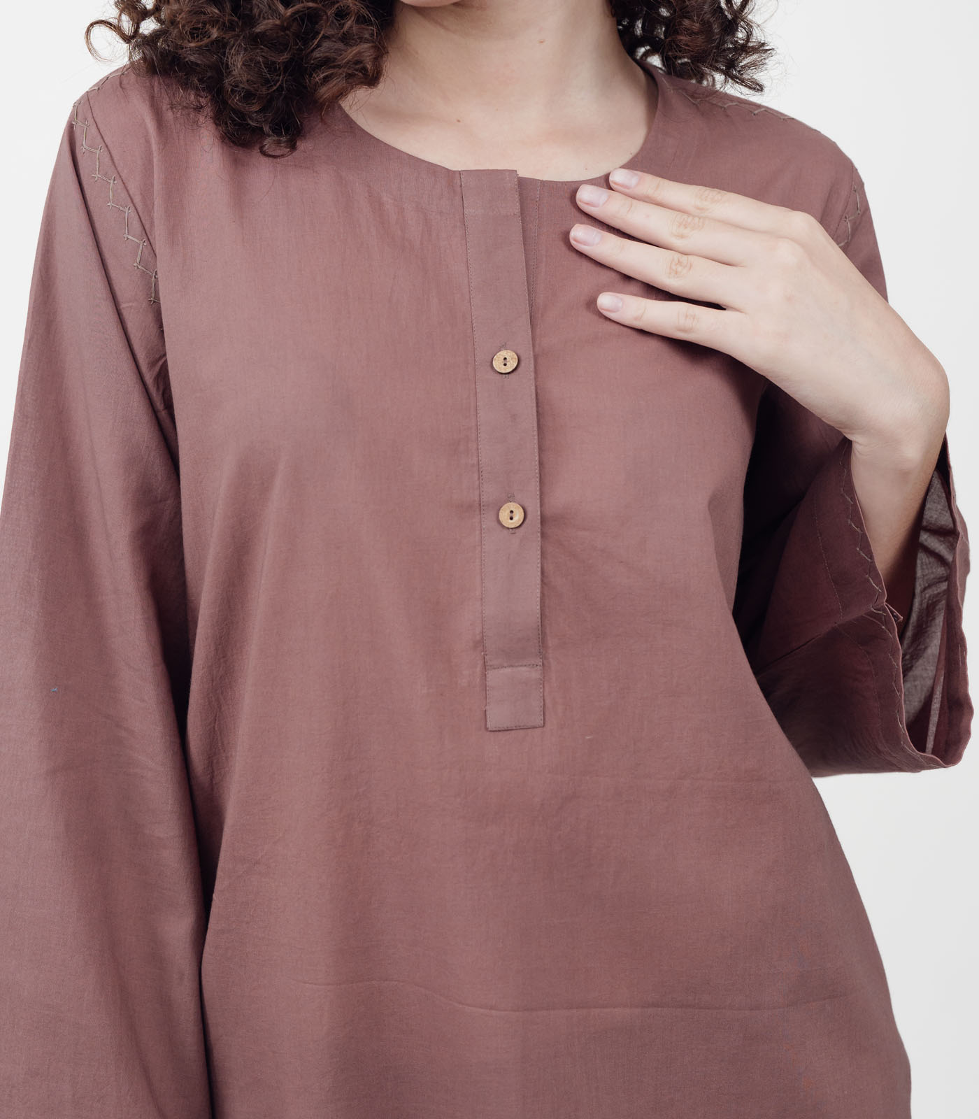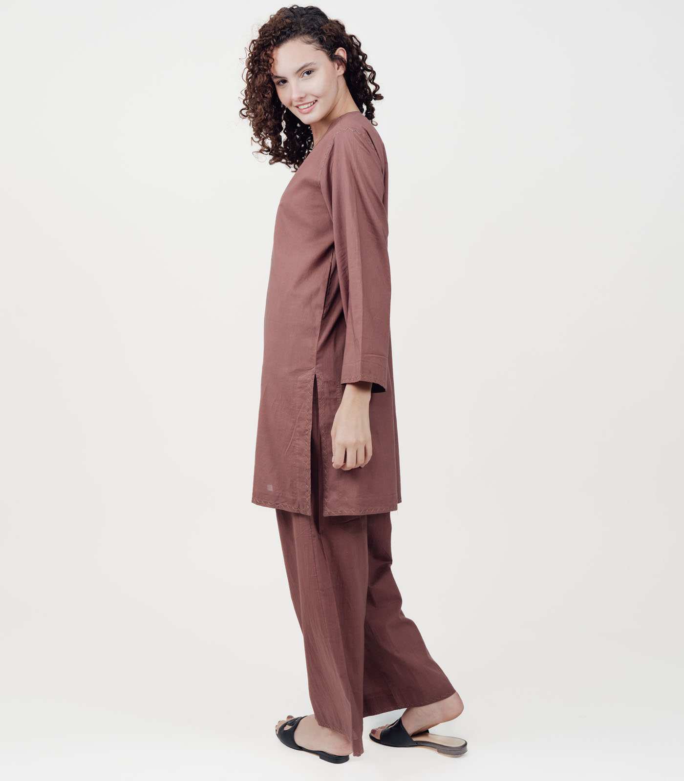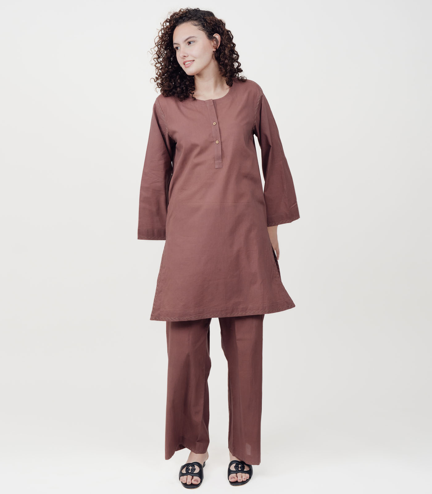 Crafted in lightweight and breathable pure cotton fabric, this Co-Ord set features a straight fit, long kurta adorned with minimal hand embroidery and button closure on neck- paired withrelaxed fit elasticated pajama bottom. This set is every wardrobe’s understated yet the OG essential, designed for ease and movement. It is perfect for days when you want to stay comfortable without compromising on style- a go to piece for work, travel or casual gatherings