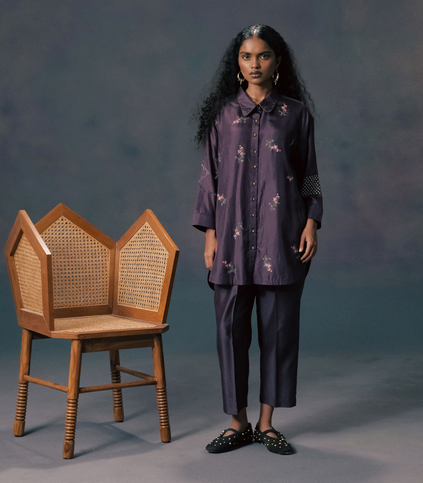 SHIRT IN MULBERRY SILK WITH STRAIGHT PANTS