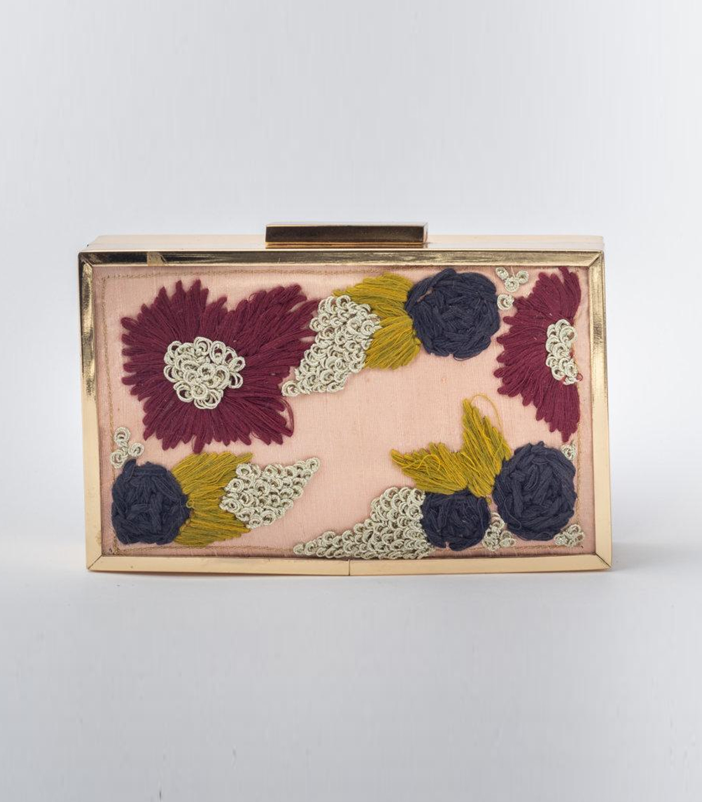 Bright colour Thread work with hightlights of Zari knots. Potlis come with beautifully hand made flower tassels which is the USP of the brand