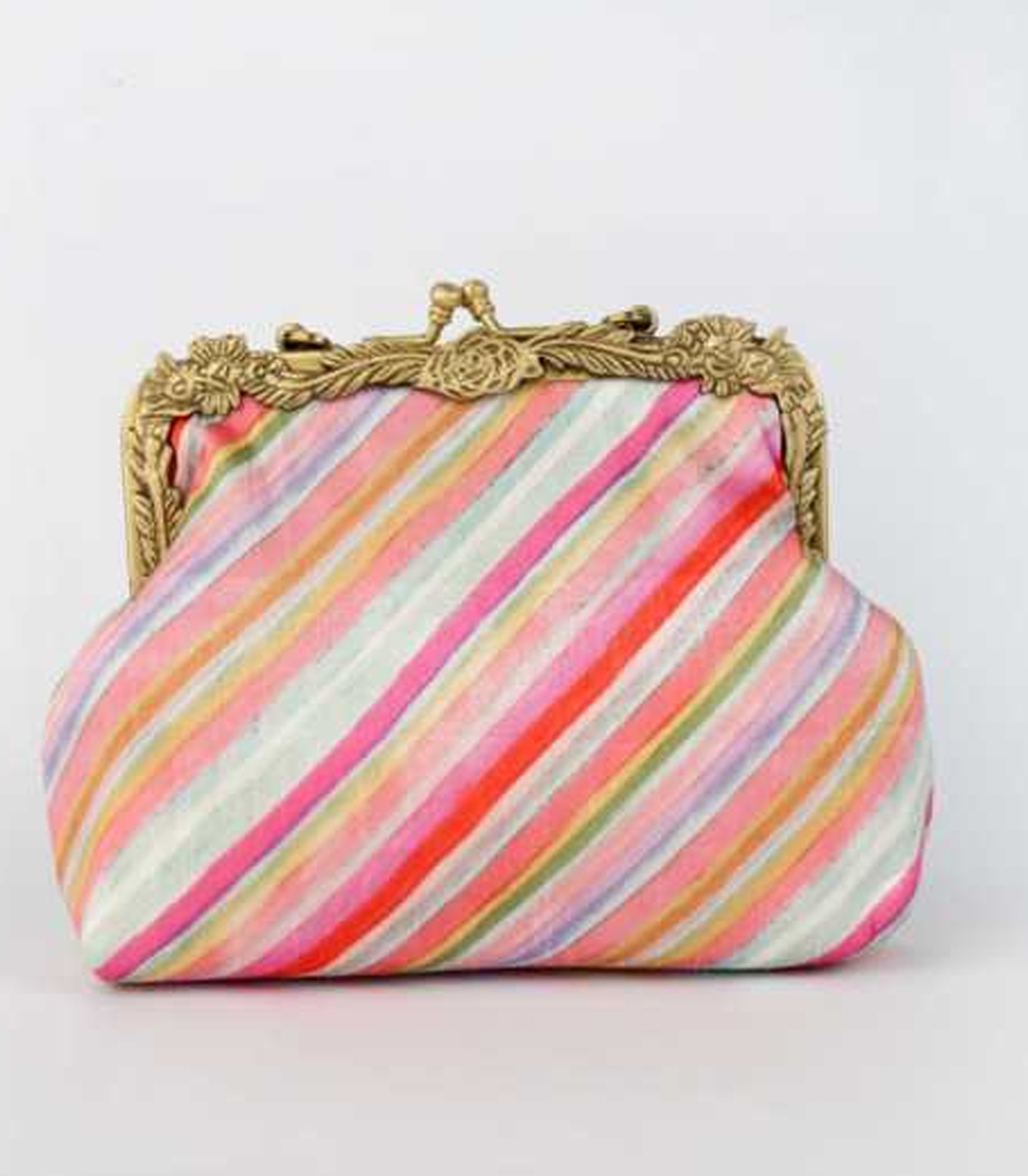 All diagonal bright colour lines inspired from vintage palet. Antique gold frame carved beautifully in the pattern of flower and leaves to give a classic and old school look. It comes with Antique gold sling chain.