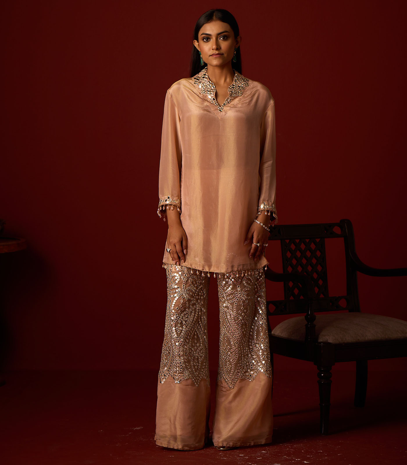 Tissue Palazzos With Zari Mirrorwork Applique