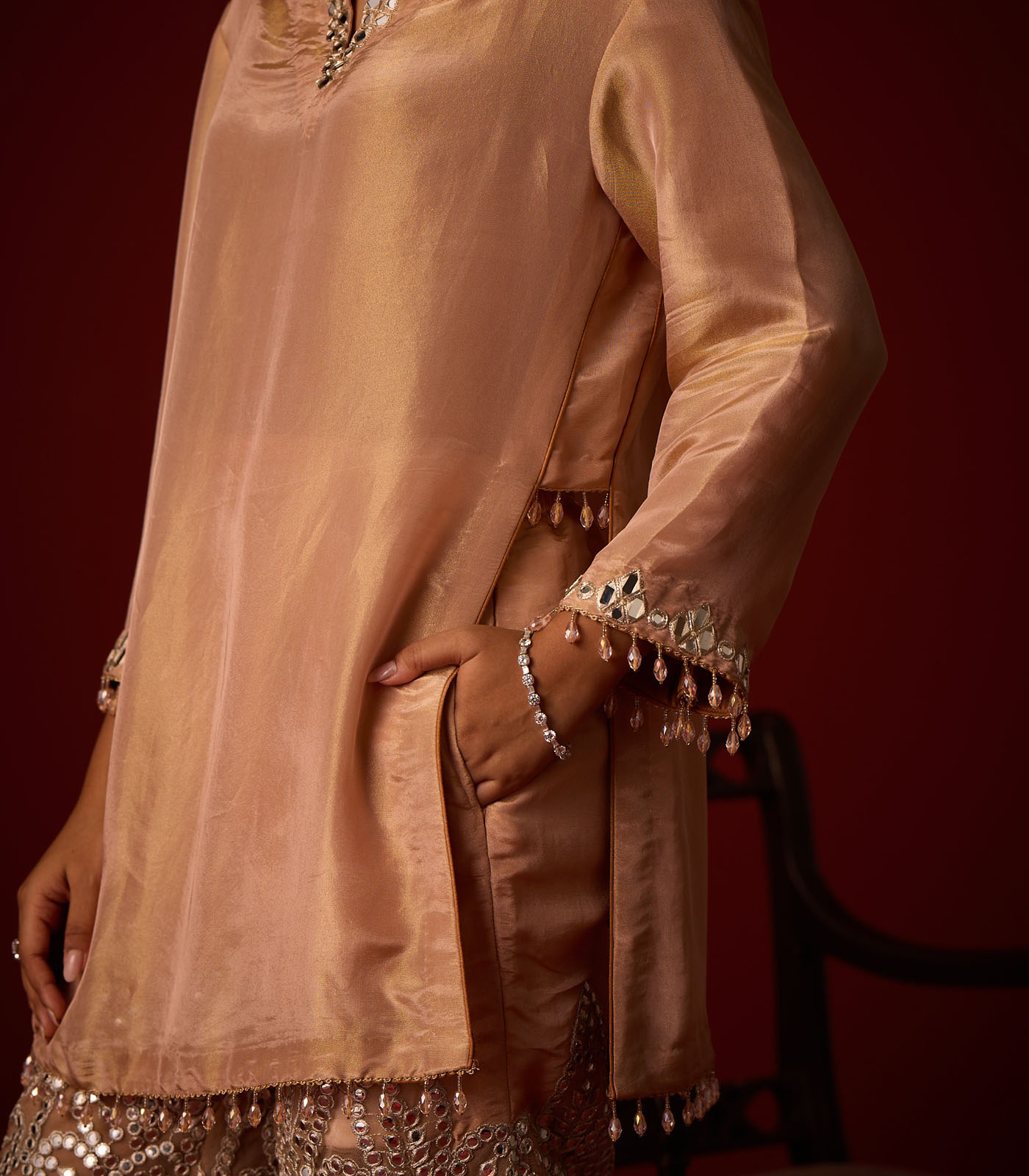Tissue Mirror Work Hi Neck Tunic