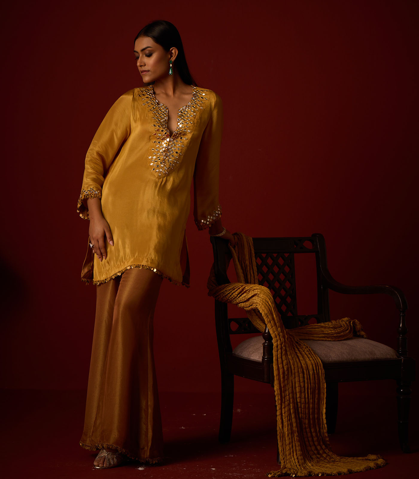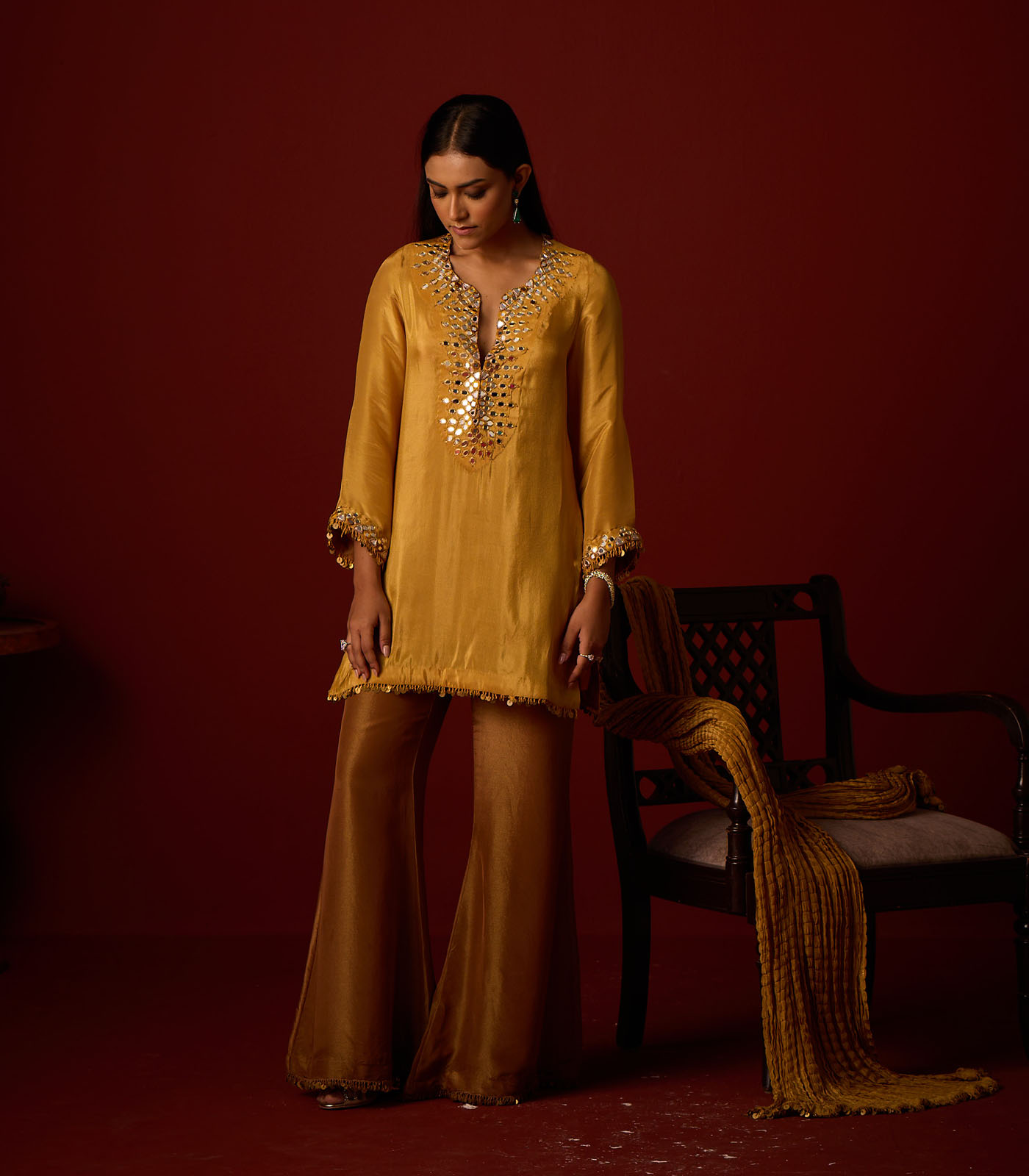 Tissue Mirror Work Tunic, Embellished With Hand Embroidery Zari Mirror Work, Thread Work, Enhanced With Beadwork And Tassel Details