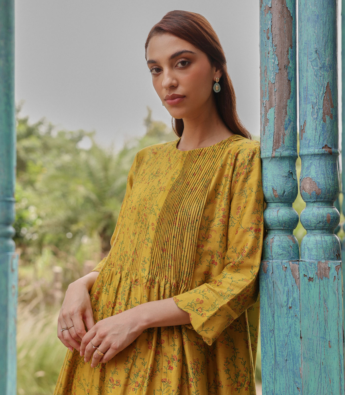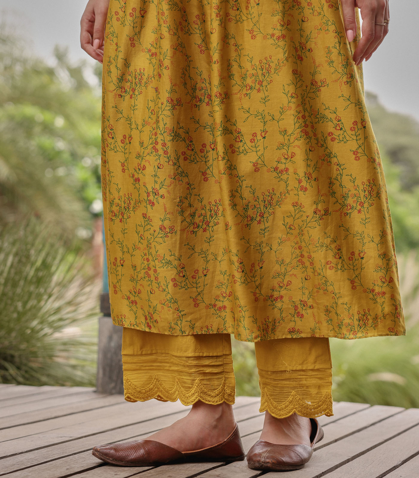 The Tuscany Pintuck Co-ord Set features a breezy silhouette that moves with ease, elevated by neat pintucks and delicate florals for a refined festive look. It is paired with matching pants finished with a scallop embroidered hemline.
