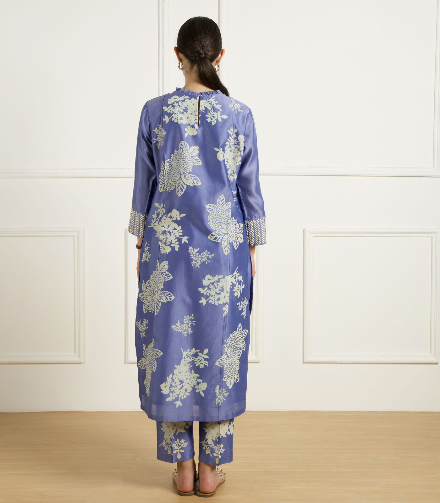 TWILIGHT FRONT PLEATS TUNIC IN SILK CHANDERI AND PRINTED PANTS IN SILK CHANDERI