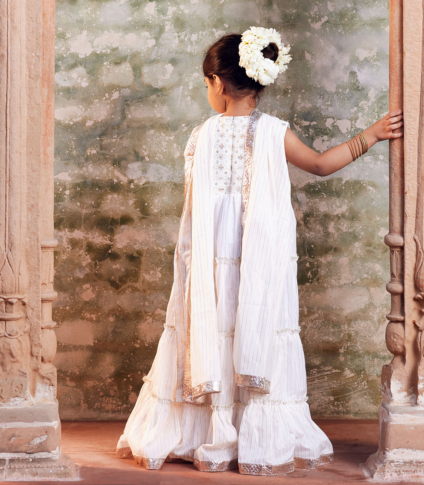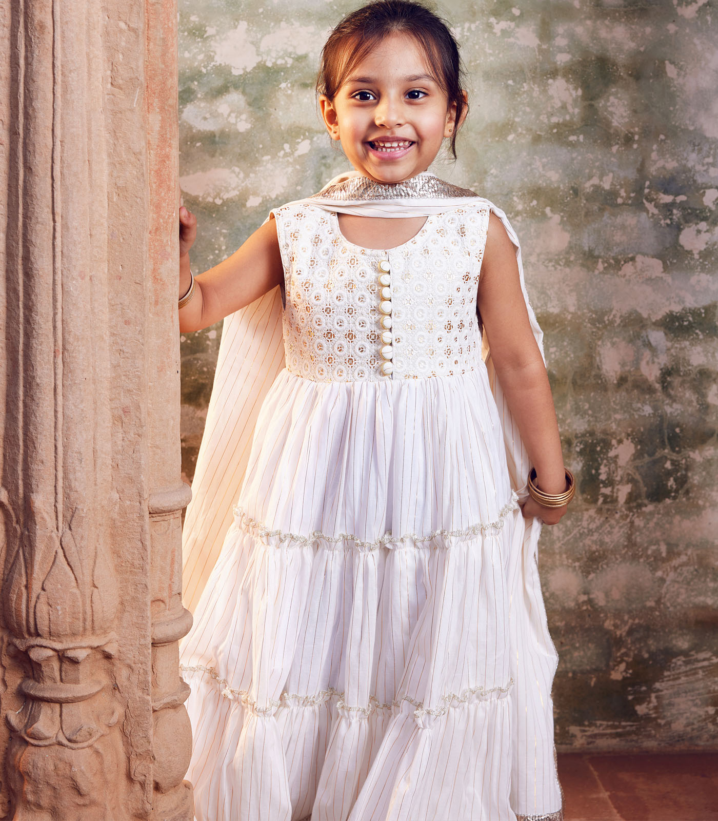 White Anarkali with matching dupatta