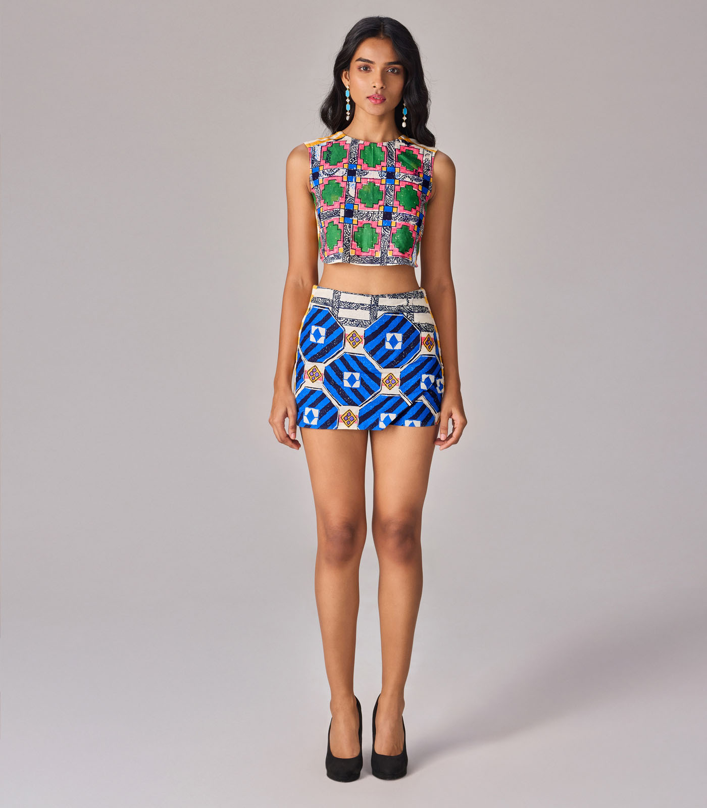 Skort : Abstract print, high waist skort
